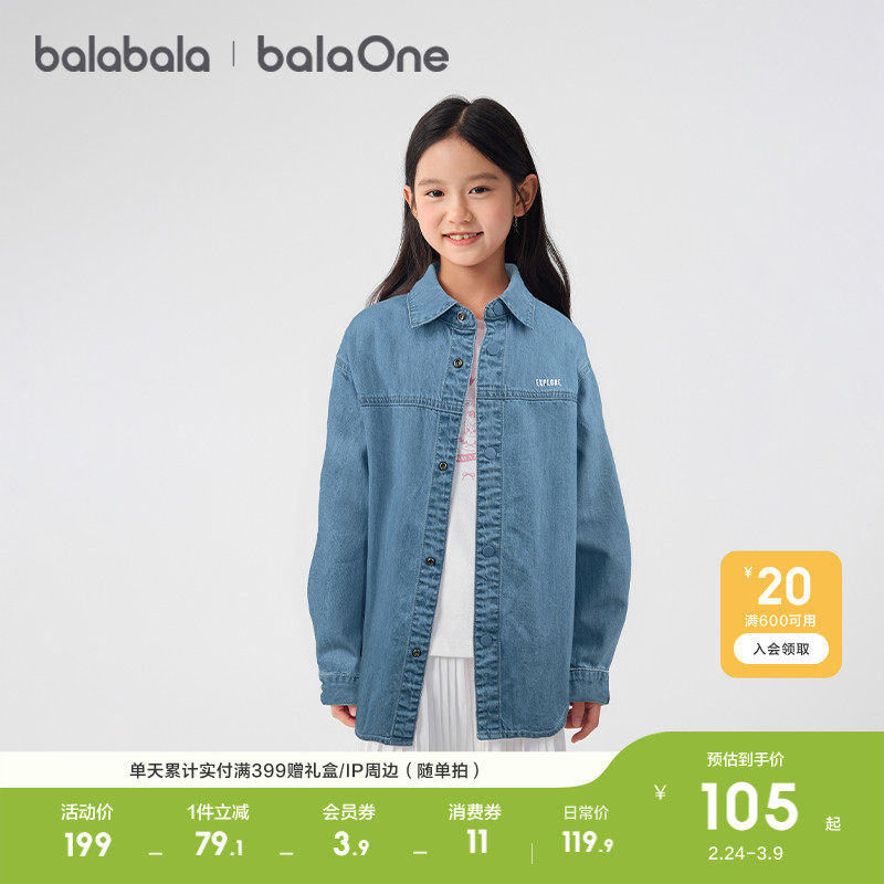 巴拉巴拉童装儿童衬衫男童女童长袖衬衣2025新款春秋全棉牛仔外套