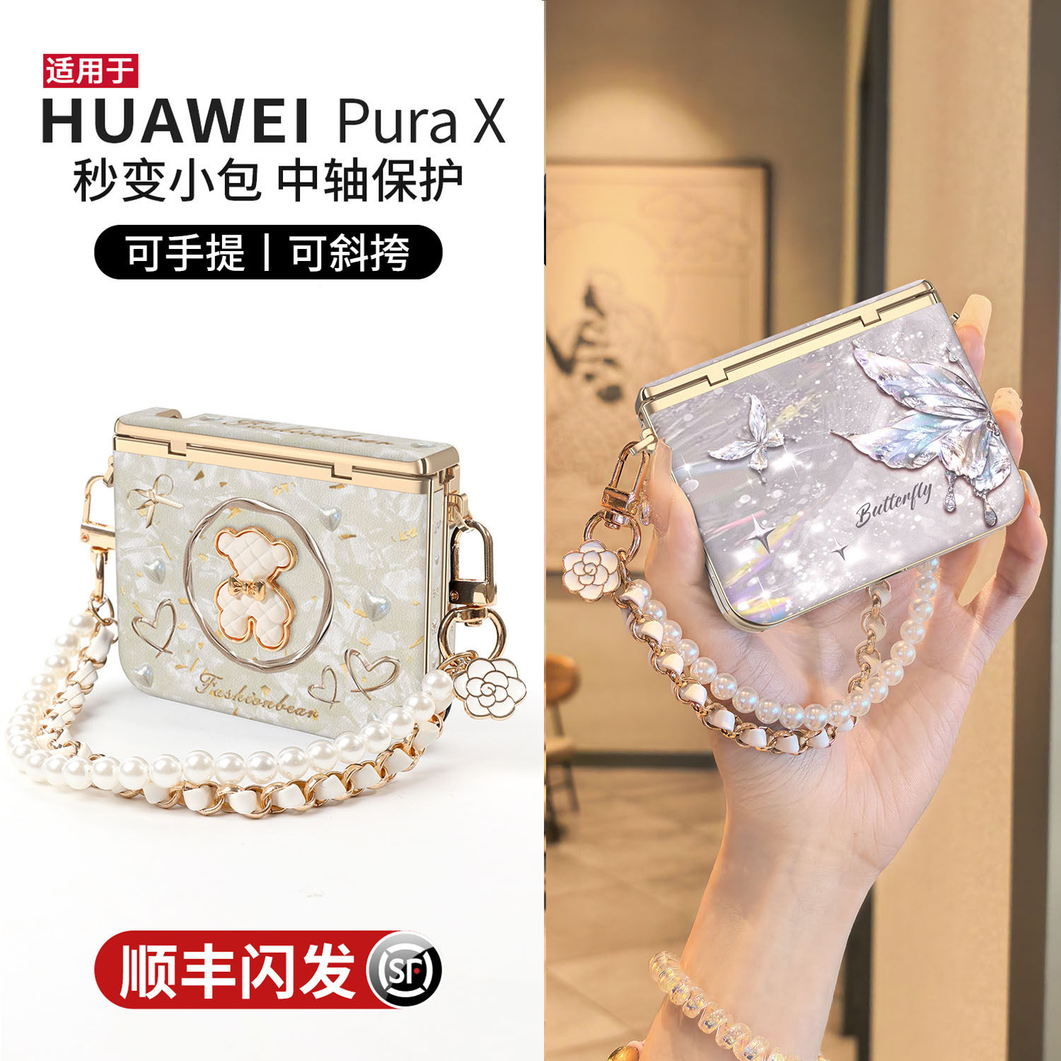 适用于华为purax折叠手机壳新款典藏版pura x中轴全包防摔保护壳带斜跨手提挂绳轻奢高级感胖X高档皮纹机壳女