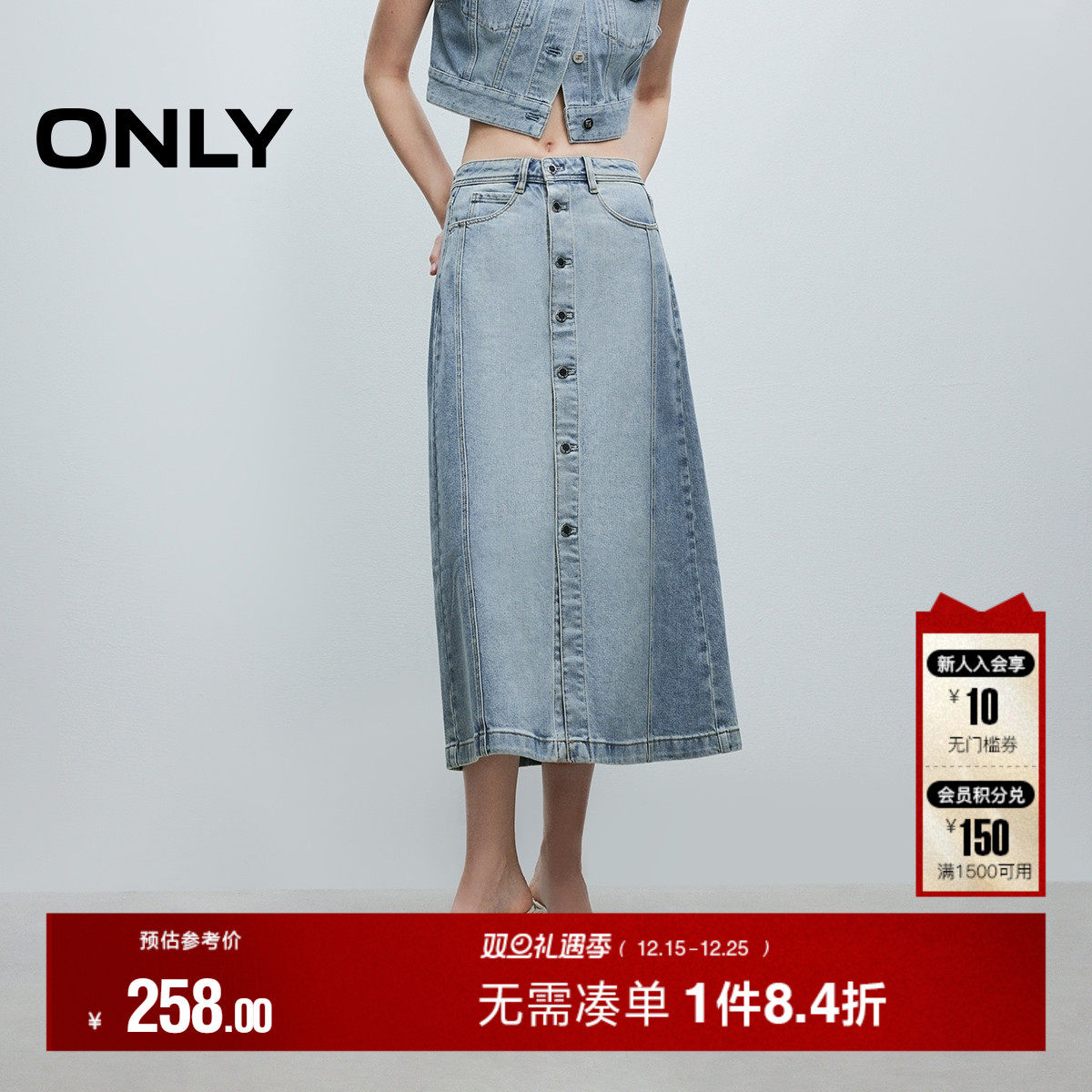 ONLY2025夏季新款前衩设计A字显瘦修容水洗中长裙牛仔半身裙女