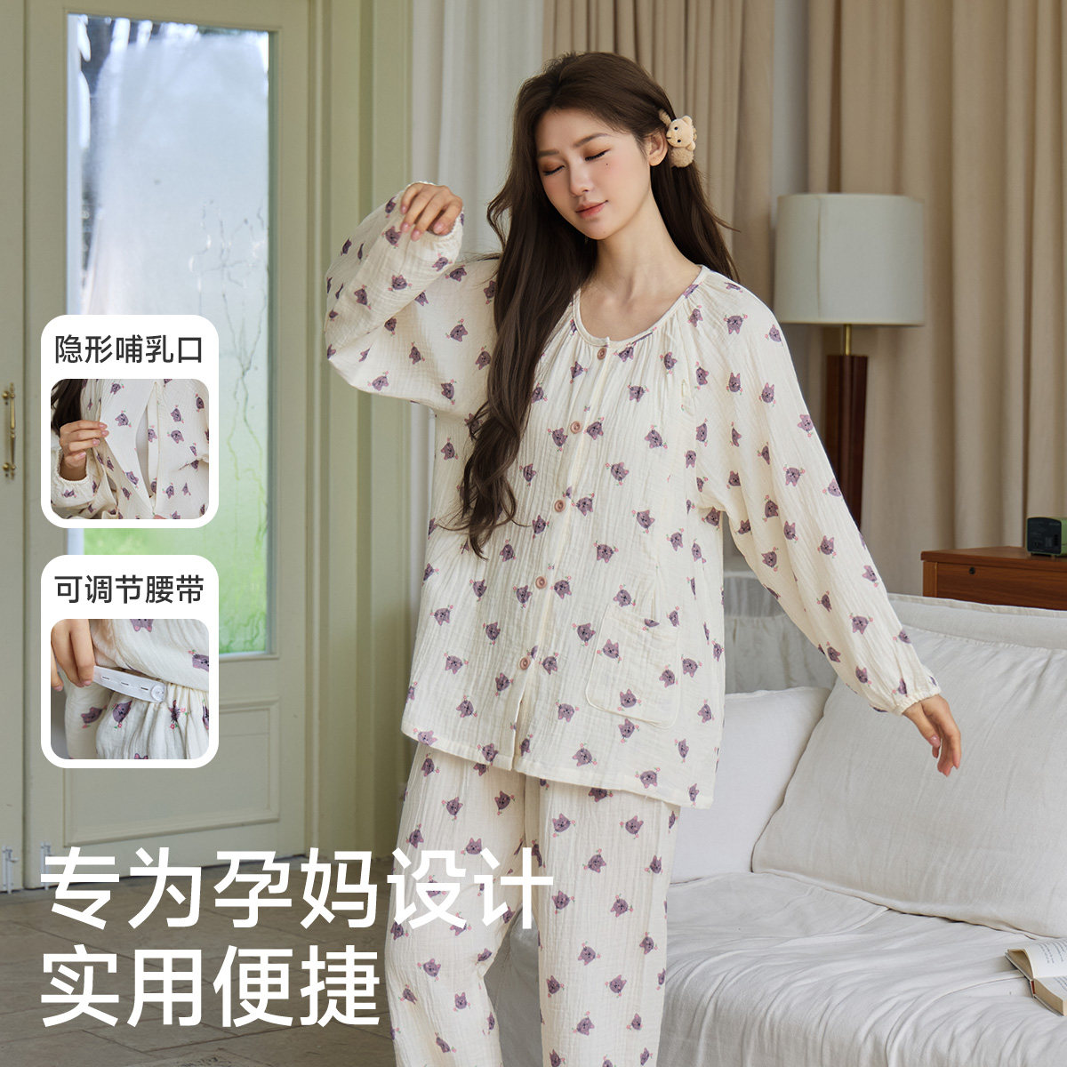 带胸垫月子服冬季纯棉产后全棉吸汗哺乳期孕妇睡衣夏季产妇家居服