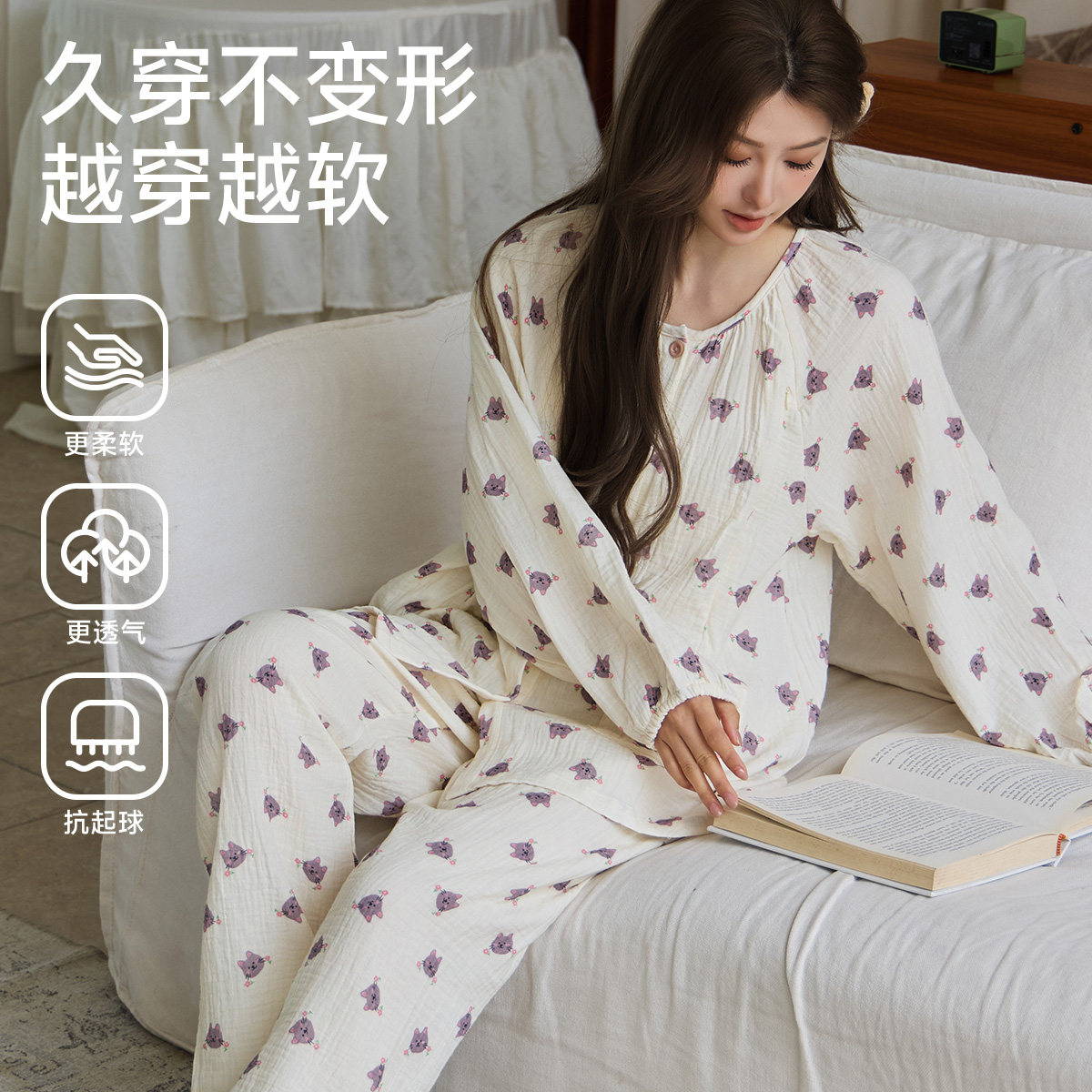 十月结晶风悦花信月子服纯棉家居服套装纱罗10A抗菌超透气春季款