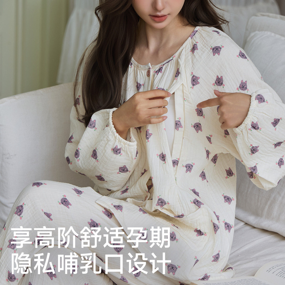 空气棉月子服秋冬纯棉产后夏季薄款全棉吸汗喂奶产妇哺乳孕妇睡衣