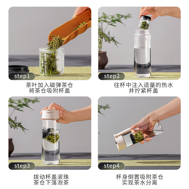 磁弹泡茶杯磁吸茶水分离杯大容量耐高温运动便携水杯子喝茶冷泡