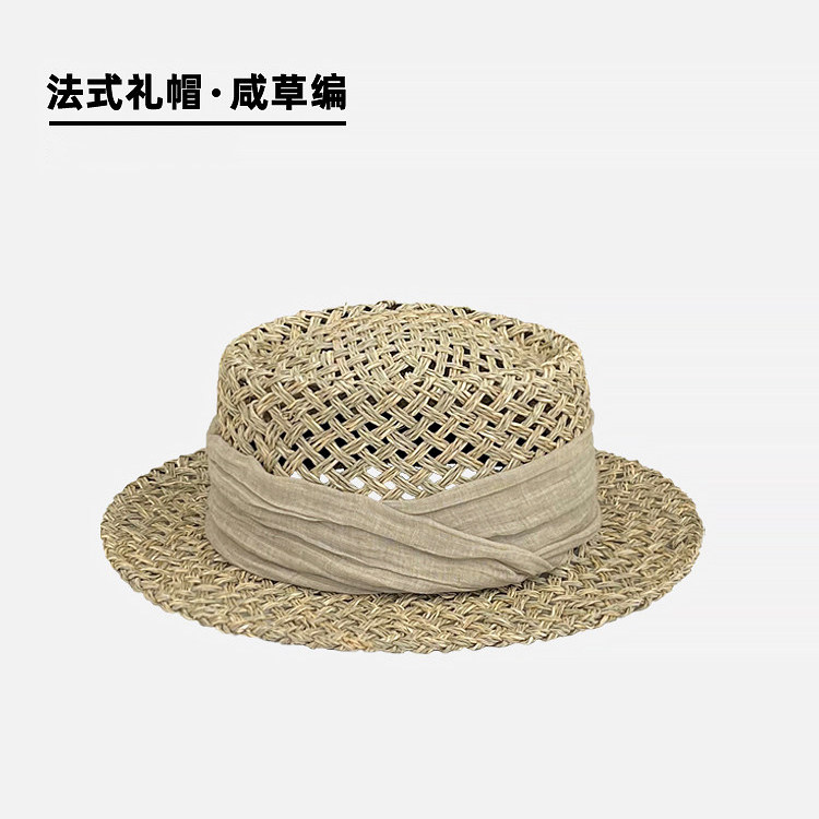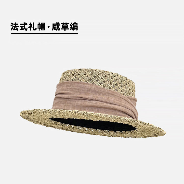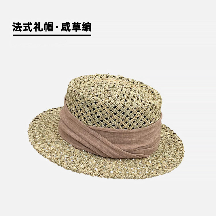 Classy key新加坡设计师联名款草编凹顶百搭沙滩帽女法式度假草帽