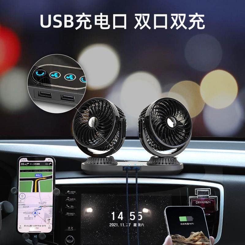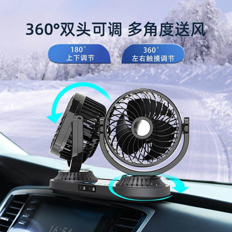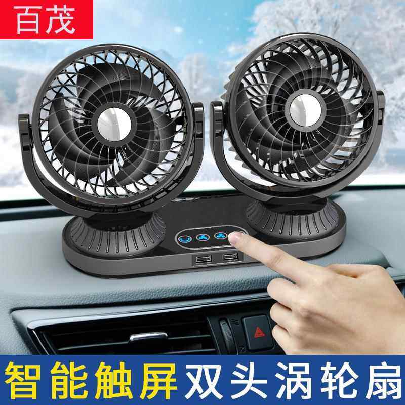 车载风扇智能触屏自动摇头车用小风扇12V24V通用大风力汽车电风扇