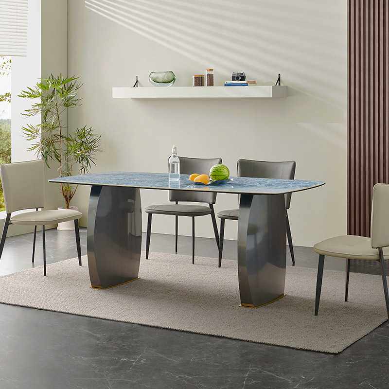 餐桌岩板长方形桌子微晶石奢石饭桌家用小户型意式大师设计奢石风