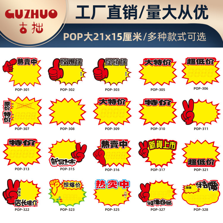 超市展示牌价格标签大号价格牌爆炸贴促销牌水果展示牌POP广告纸