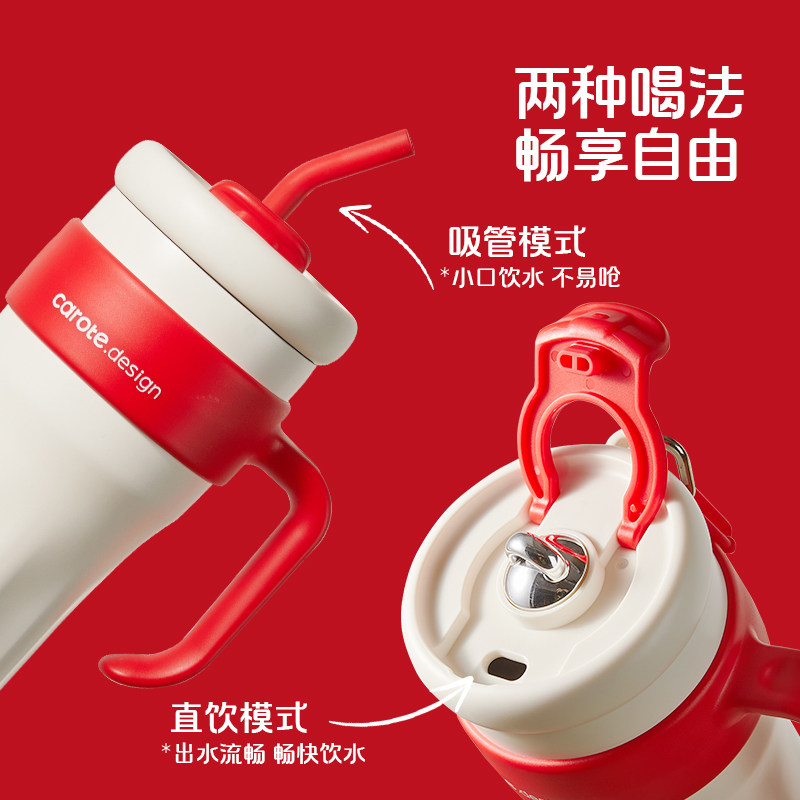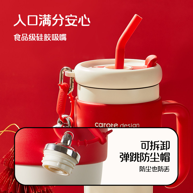 卡罗特大容量巨无冰霸保温杯女高颜值吸管杯316不锈钢吨吨水杯子