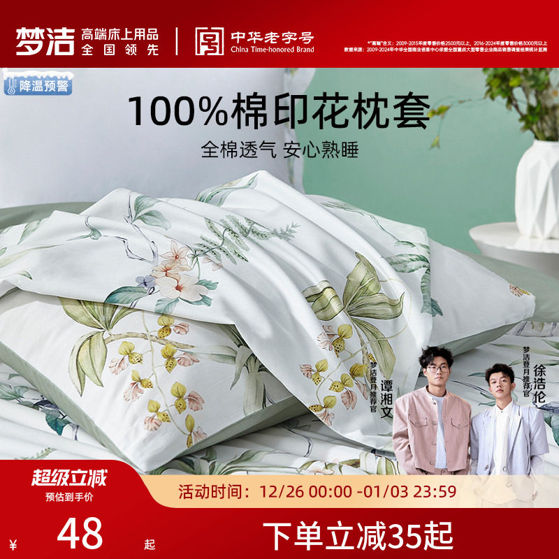 梦洁家纺枕套一对装全棉四季纯棉成人儿童枕头套枕芯内胆套50*70