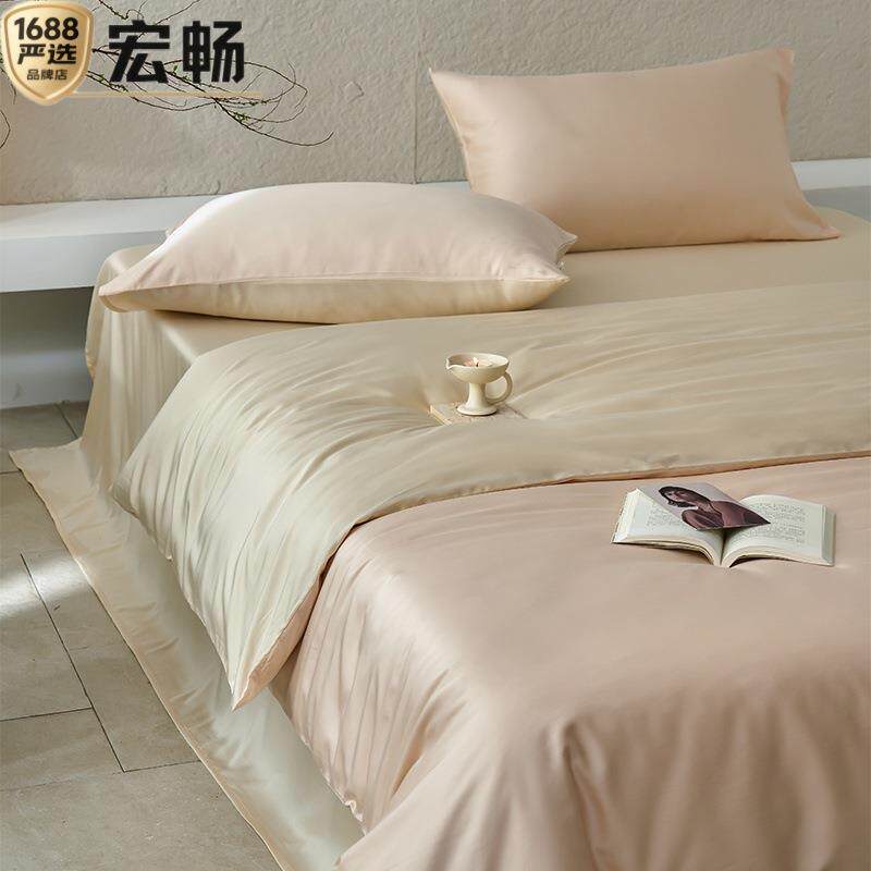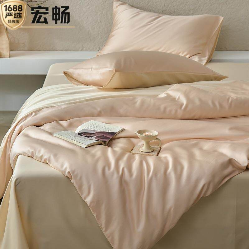 A类60支兰精天丝棉四件套高支高密简约纯色长绒棉莱赛尔双拼套件