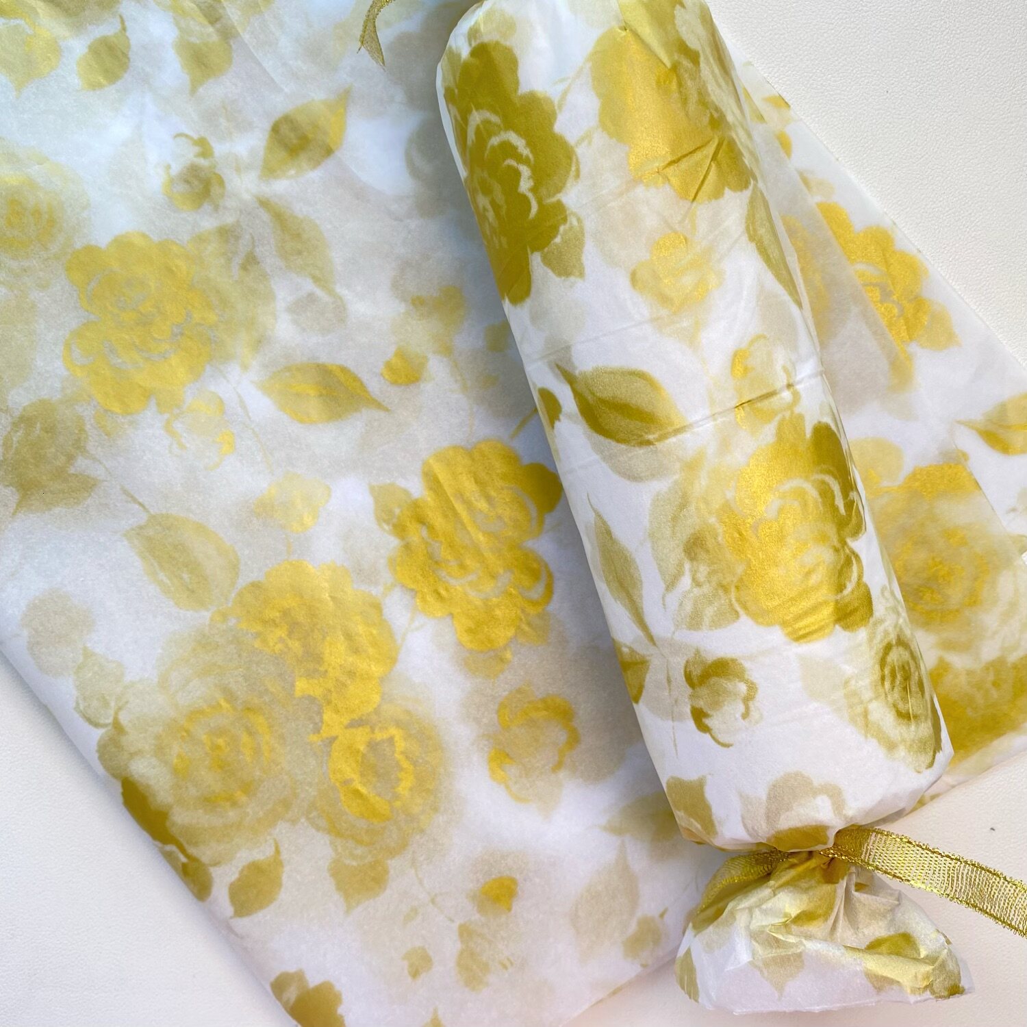 高级感金色玫瑰花雪梨纸礼物包装纸拷贝纸节日礼品服装包装纸17克