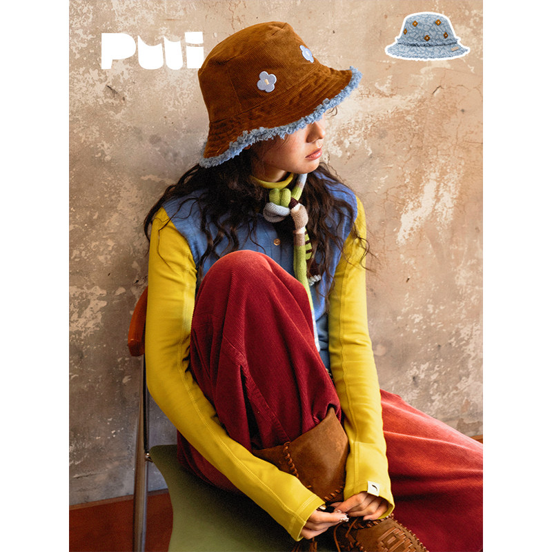 puui噗又原创寻踪系列秋冬女款可爱双面加厚毛边遮阳挡风渔夫帽