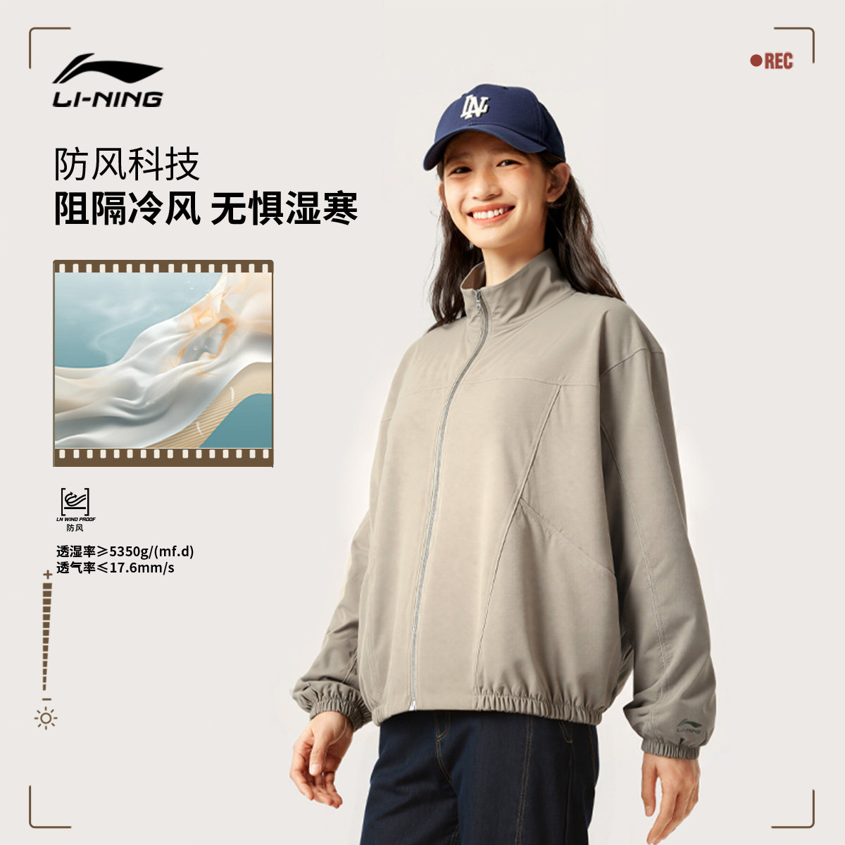 李宁外套女2026新品立领夹克宽松开衫防泼水防风春季梭织运动风衣