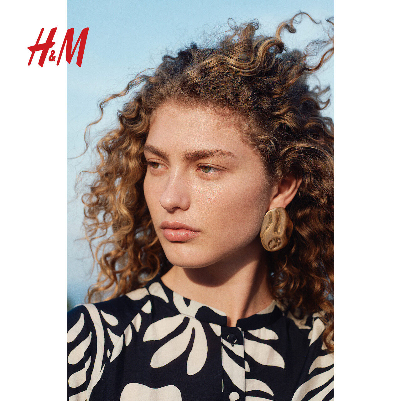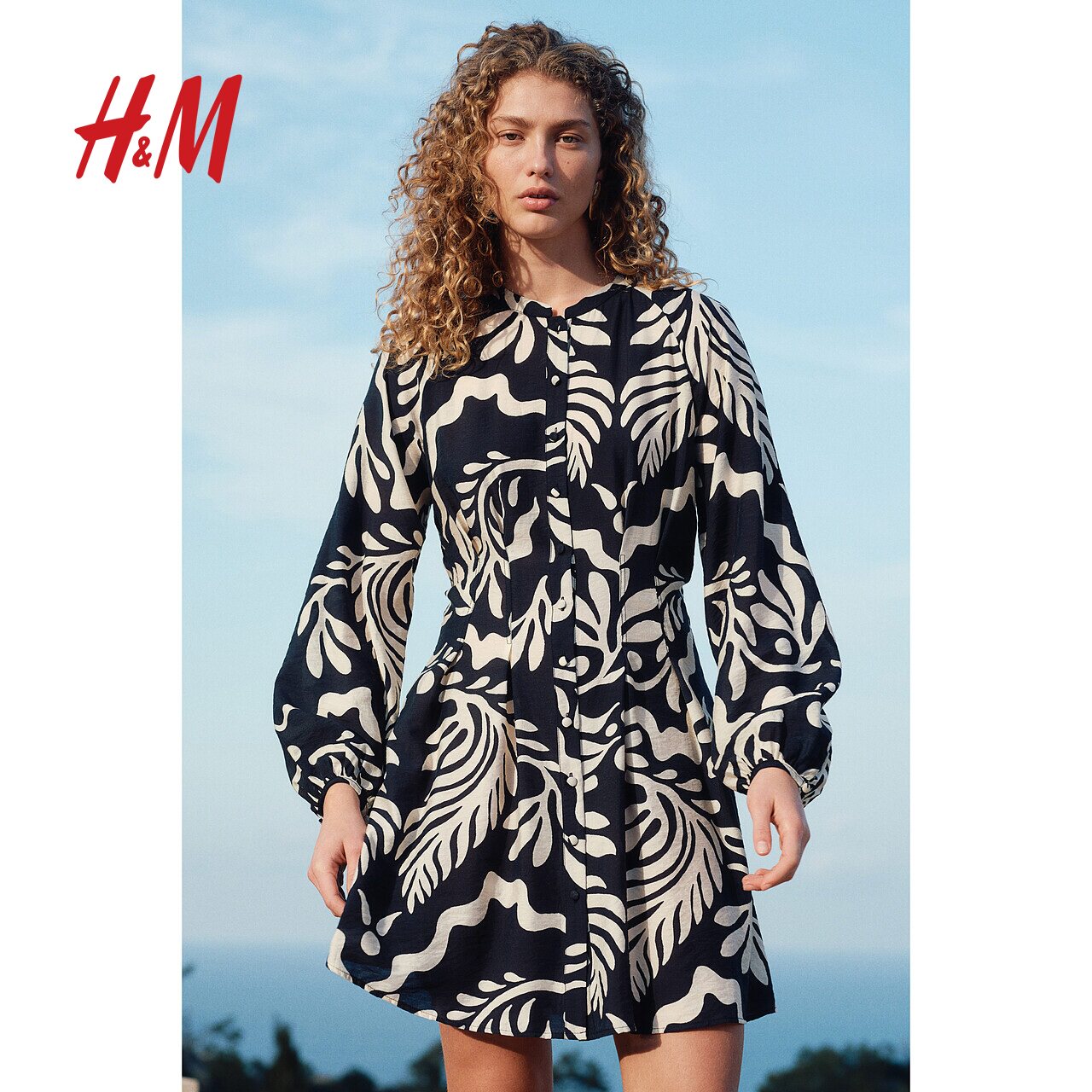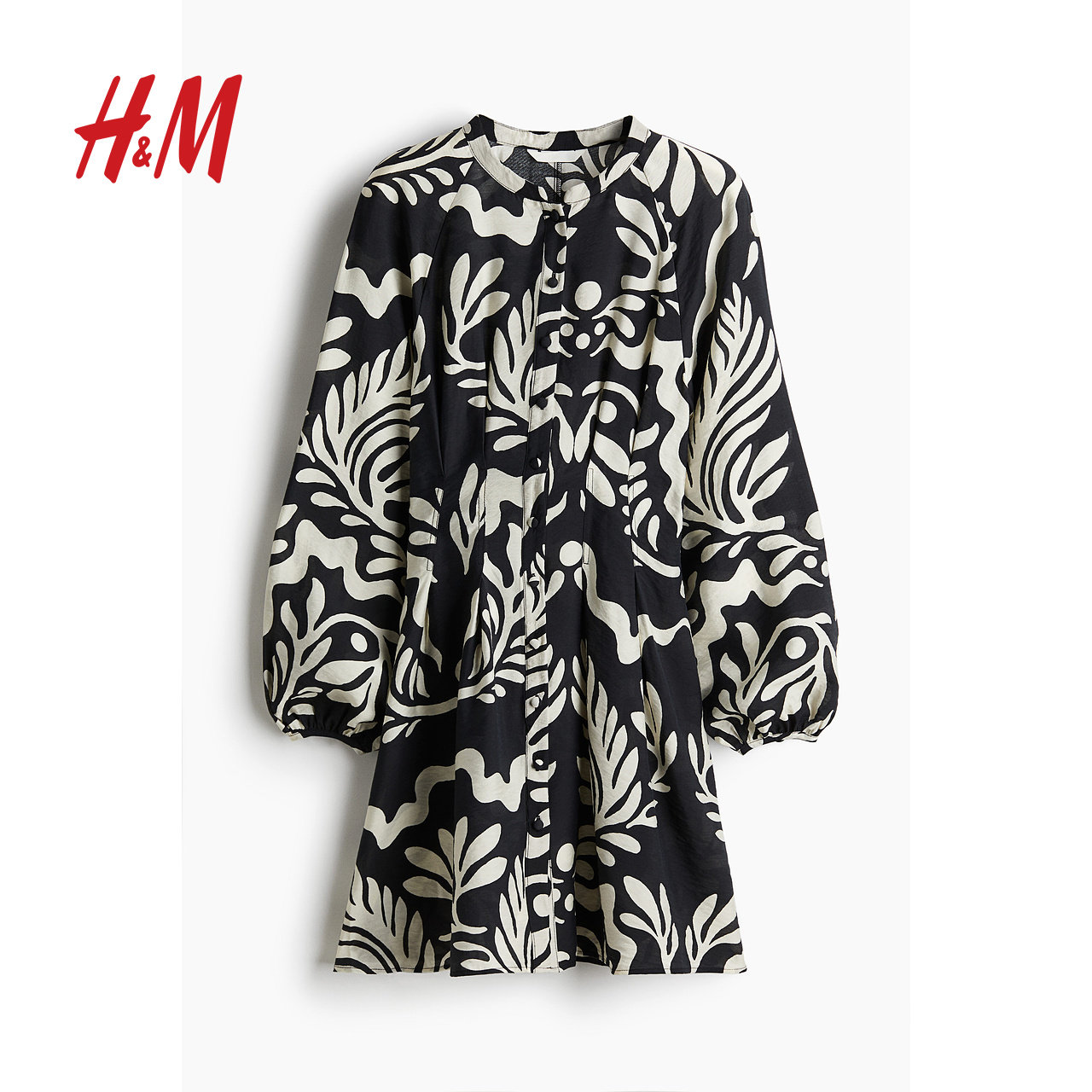 HM女装连衣裙春季中式领掐腰设计感碎花连衣裙1271151
