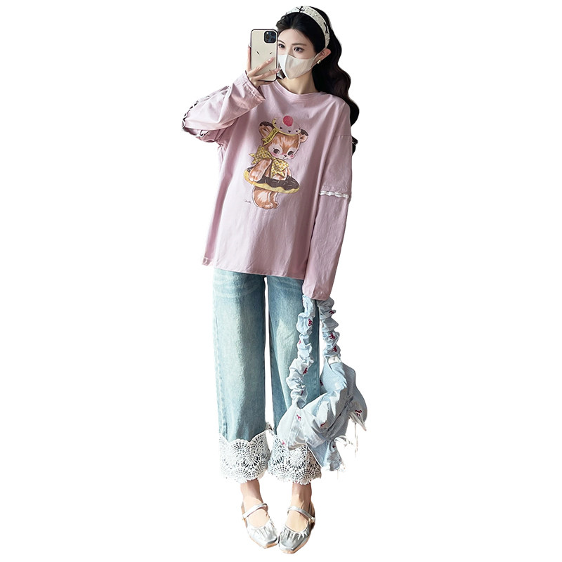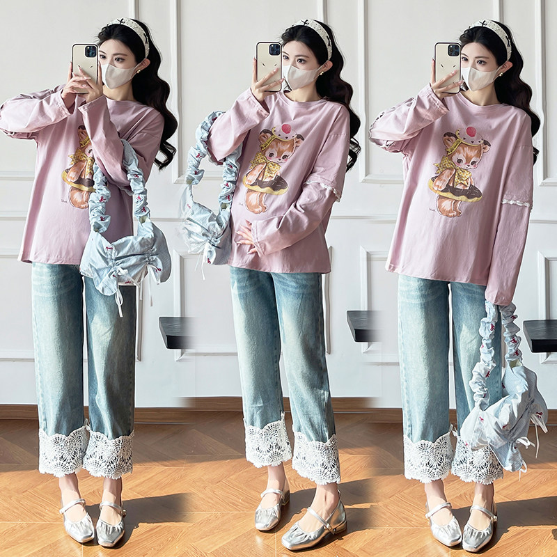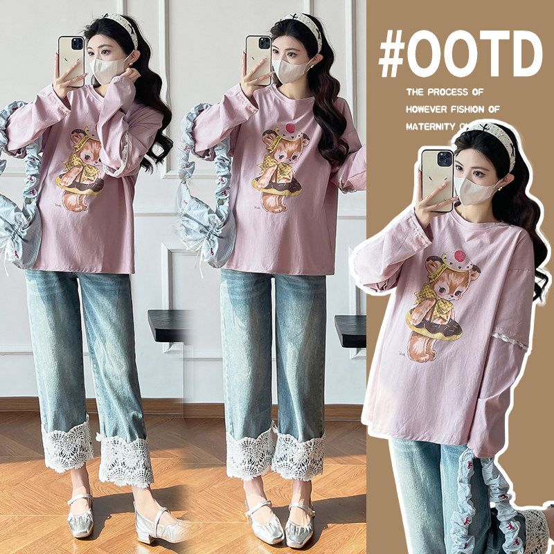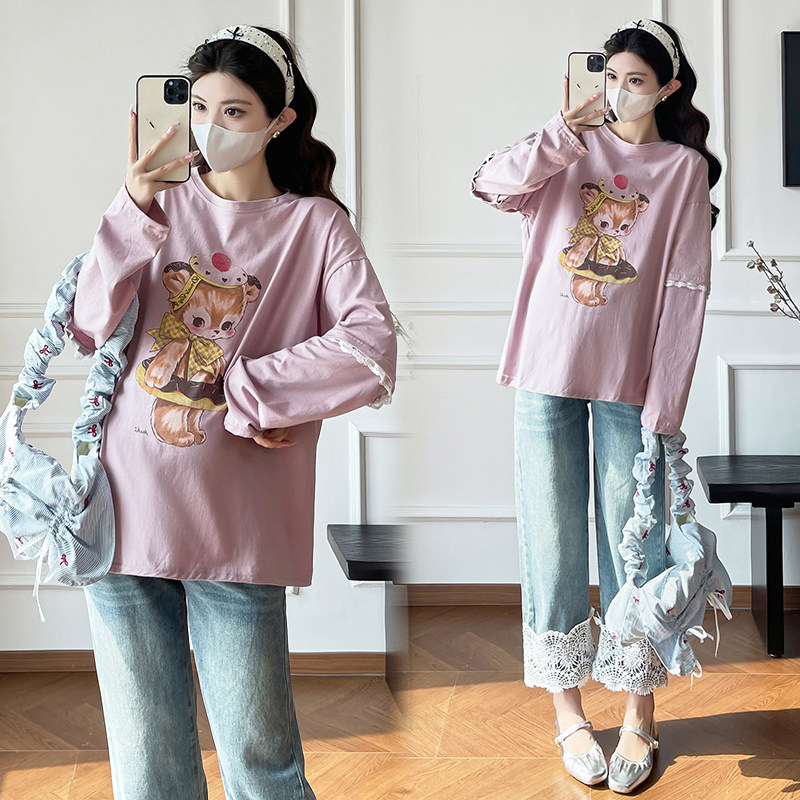 婧麒孕妇上衣春装2026新款长袖宽松甜美遮肚不显怀孕妈上衣春秋季