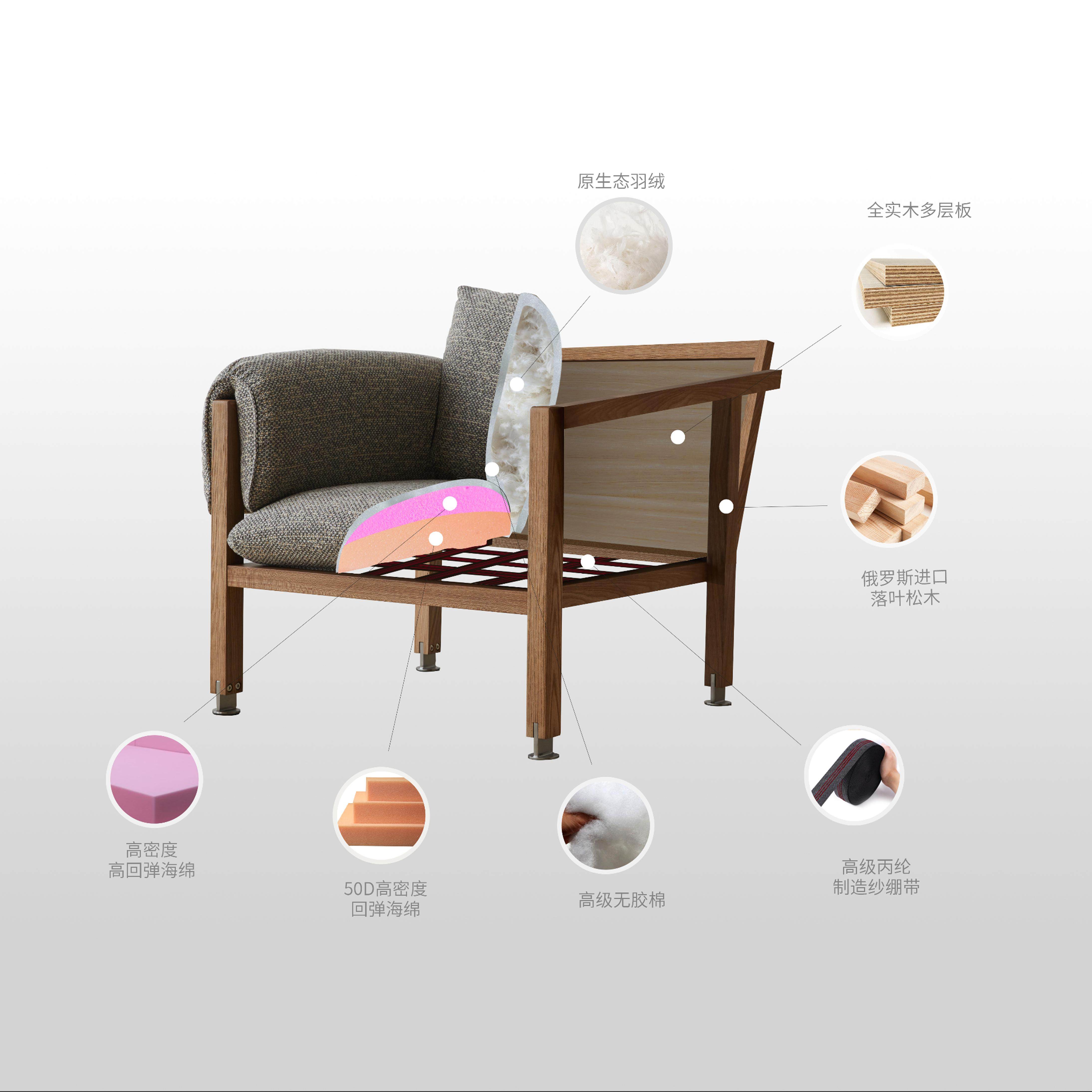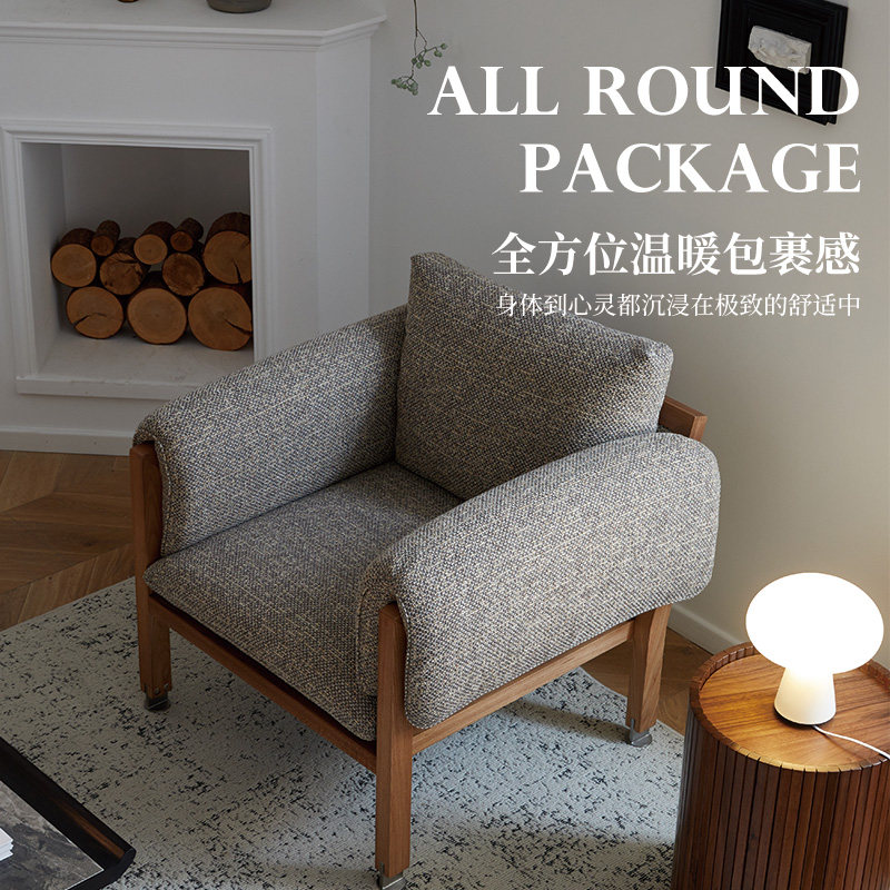 安隅集物卡尔卡松单人沙发椅原创设计实木布艺可拆洗小户型客厅