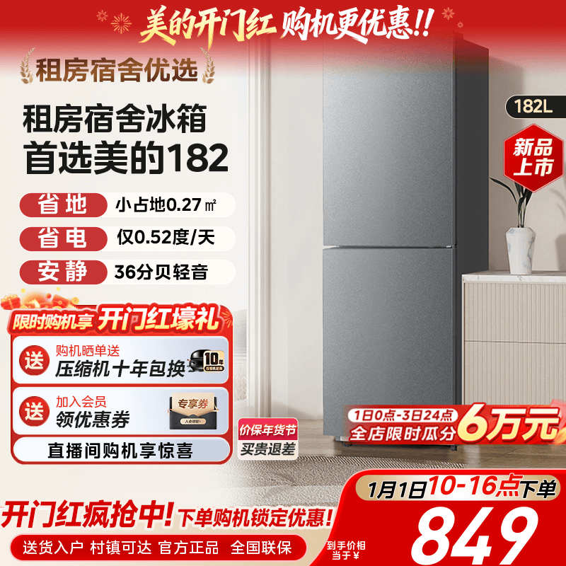 美的182双开门两门小冰箱家用小型租房宿舍用冷藏冷冻节能