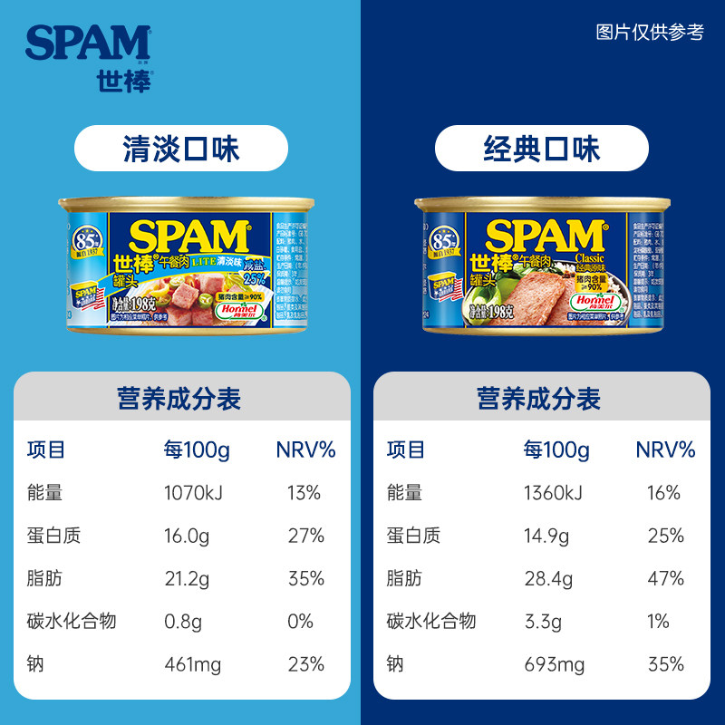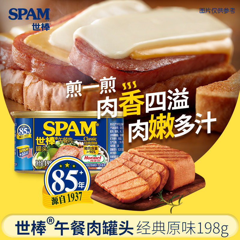 【直播专享】SPAM世棒午餐肉罐头198g*4猪肉火腿三明治午餐肉早餐