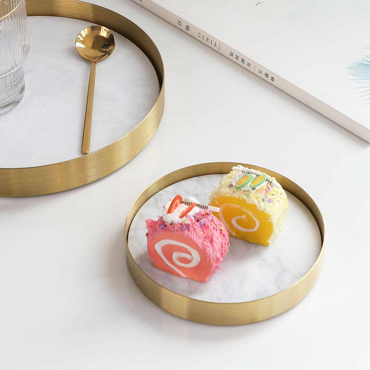 现代北欧大理石洗手间托盘摆件意式极简轻奢样板房茶几收纳储物品
