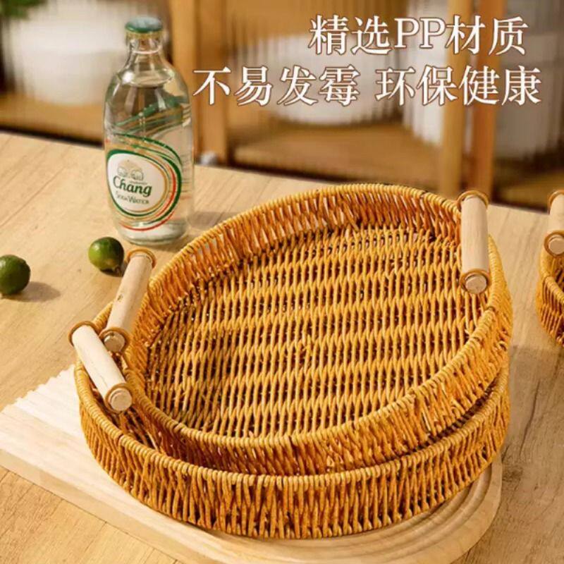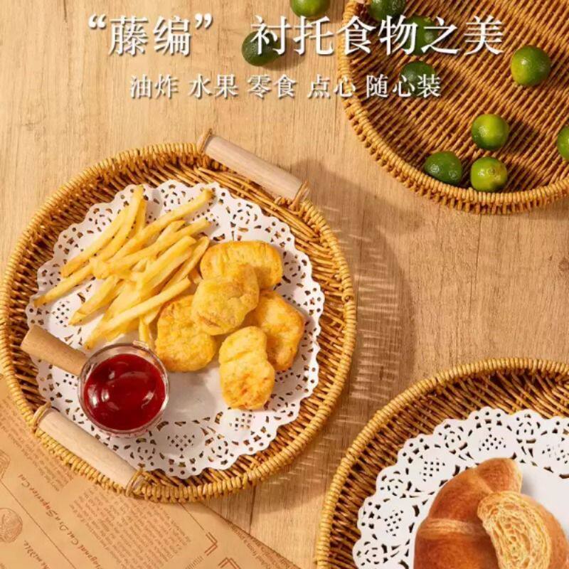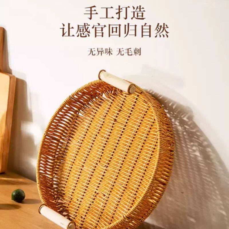 藤编水果盘馒头筐家用干果客厅茶几零食托盘面包篮编织精致特别