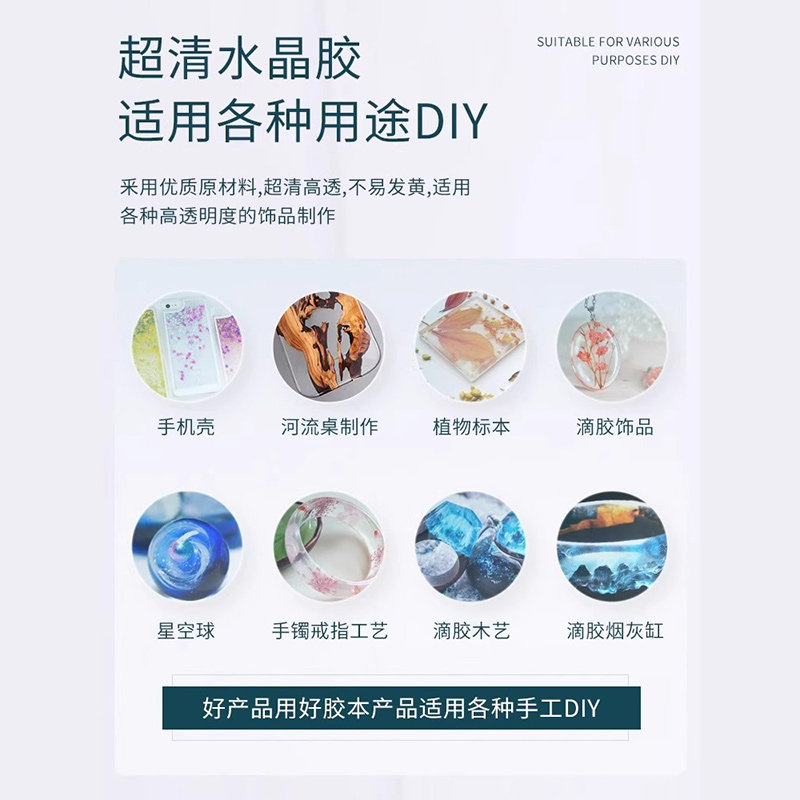 环氧树脂ab胶高透明水晶滴胶diy材料树脂画标本手工包琥珀桌子艺术品uv胶DIY胶水全透明木头手机壳快干高温