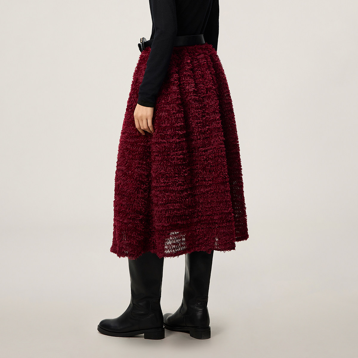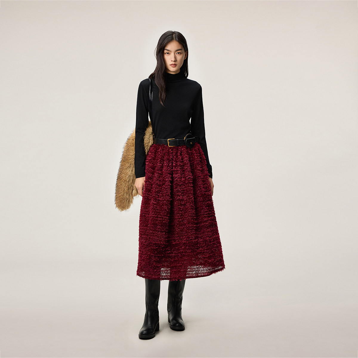 【新品】奚梦瑶联名系列欧时力盘带绣伞裙花苞半身裙中长红色26春