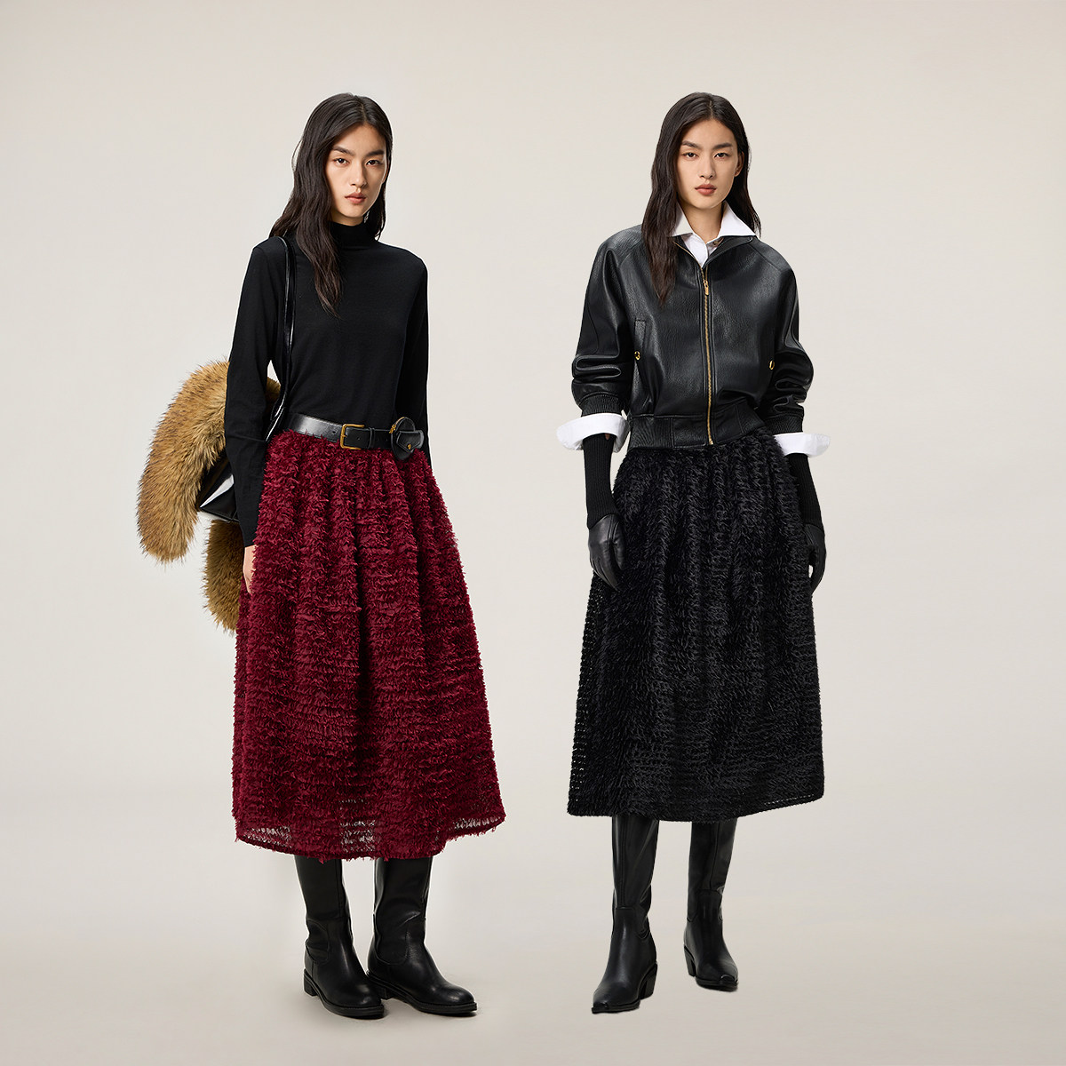 【所有女生的衣橱直播间】极尔斯 斜纹半身裙/高领T恤