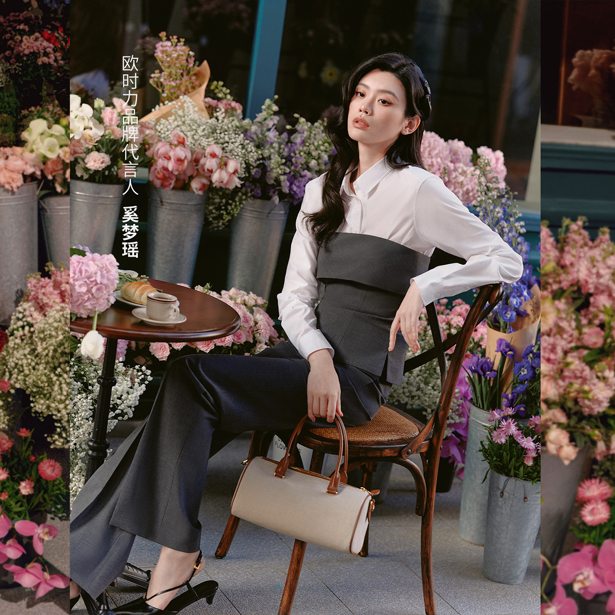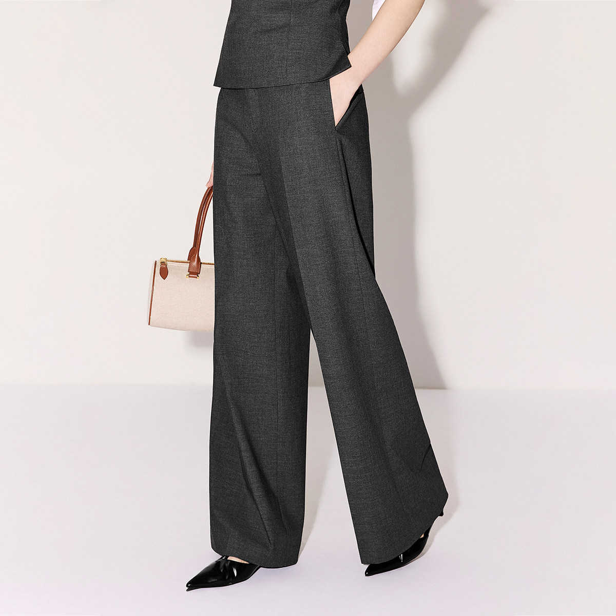 【新品】奚梦瑶同款 欧时力 休闲裤2026春含醋酸羊毛超模微喇裤