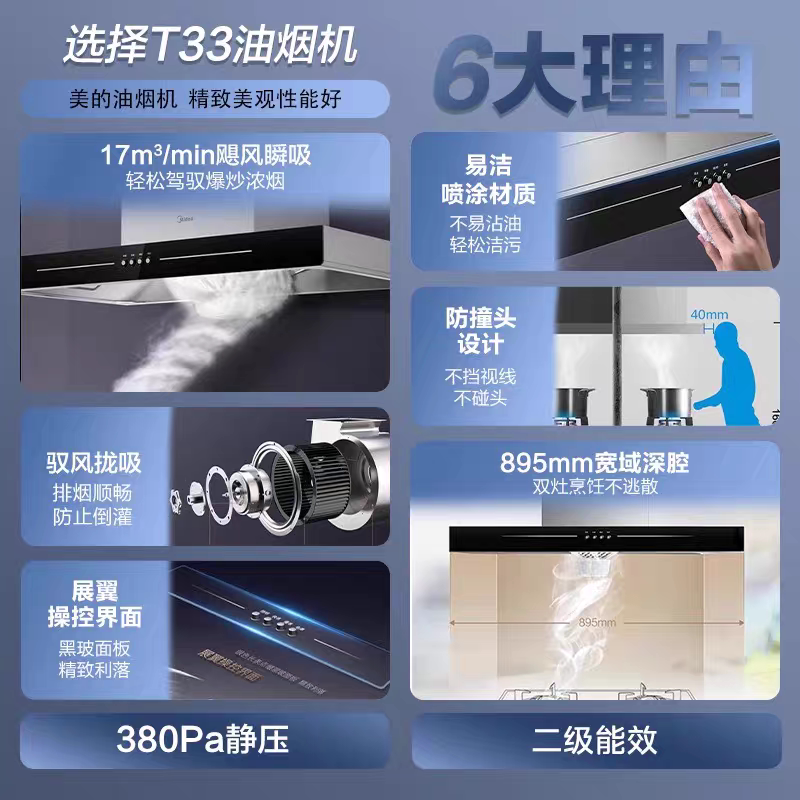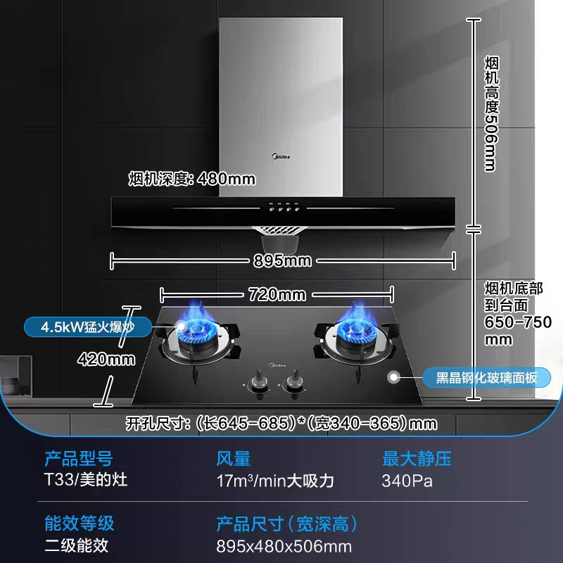 美的T33抽油烟机燃气灶套装欧式大吸力烟机灶具套装厨房三件套