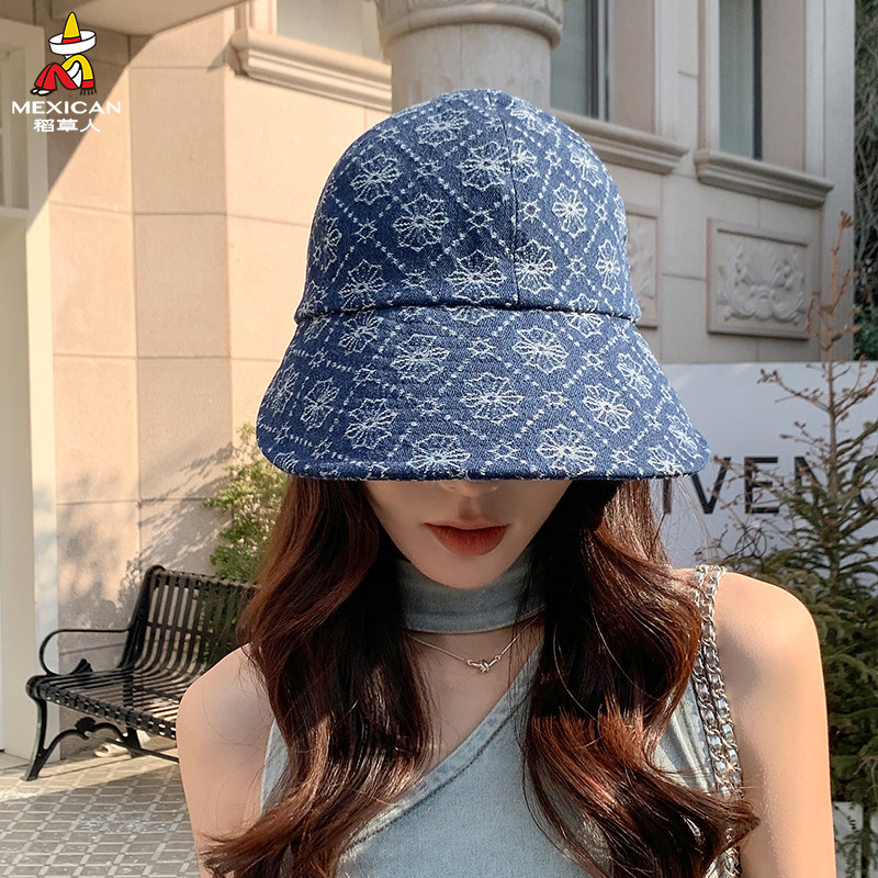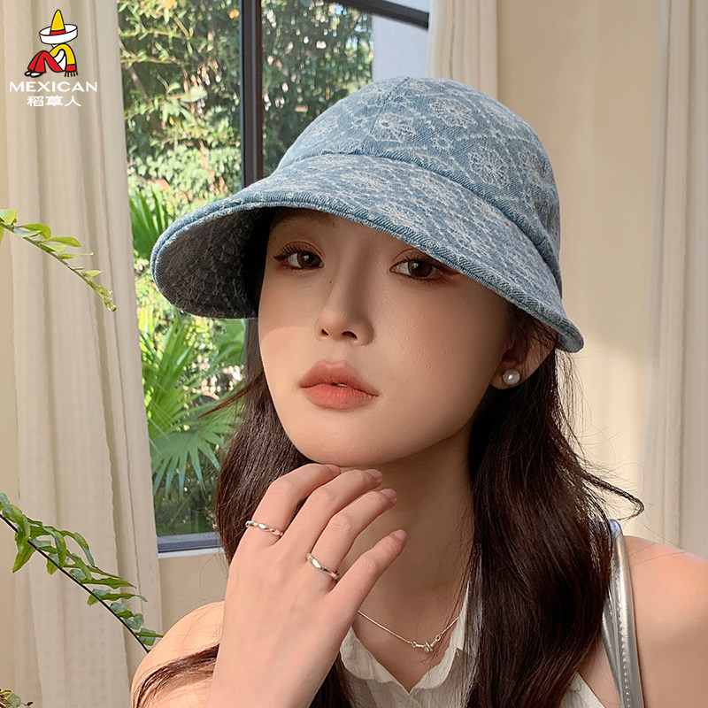 稻草人日系牛仔渔夫帽女夏季大帽檐防晒遮阳水桶帽户外百搭盆帽