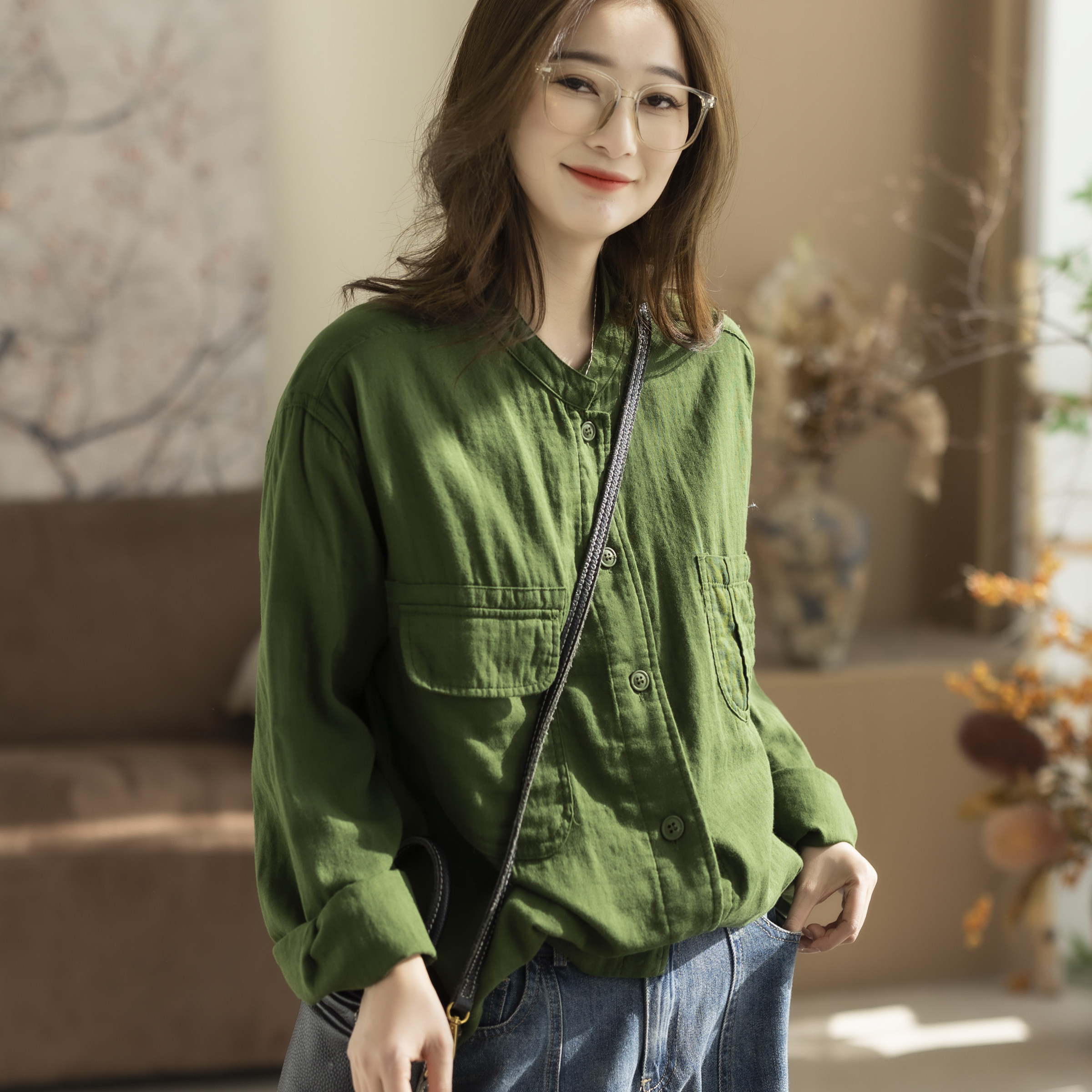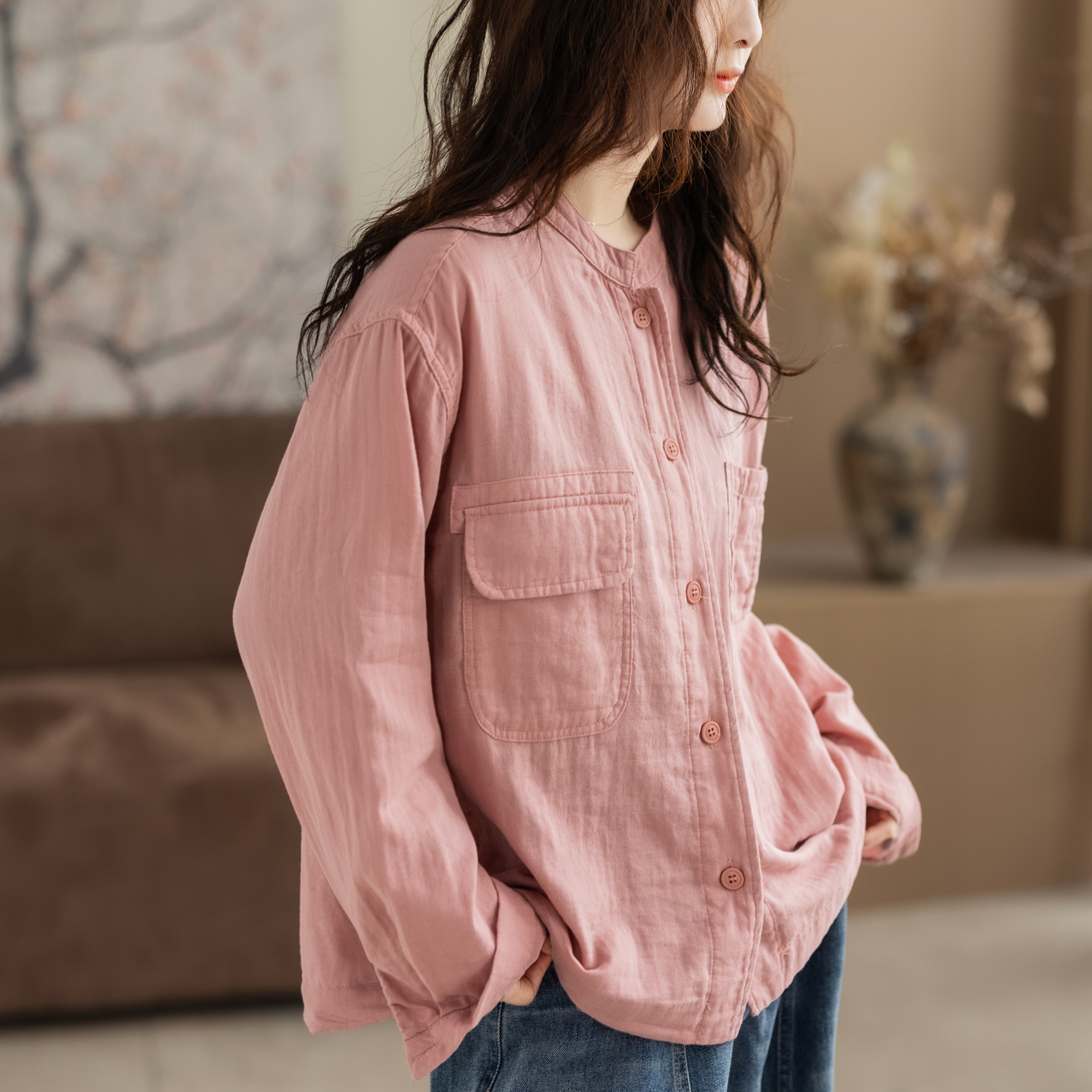 COCOBELLA设计感小立领黑白条纹衬衫外套女仿棉麻休闲衬衣SR0019