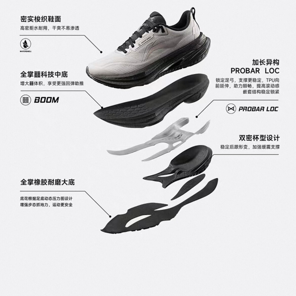 李宁越影Element丨 跑步鞋男支撑保护减震透气网面黑色轻便运动鞋