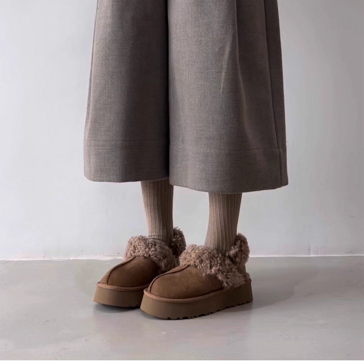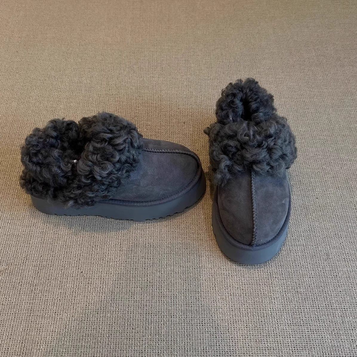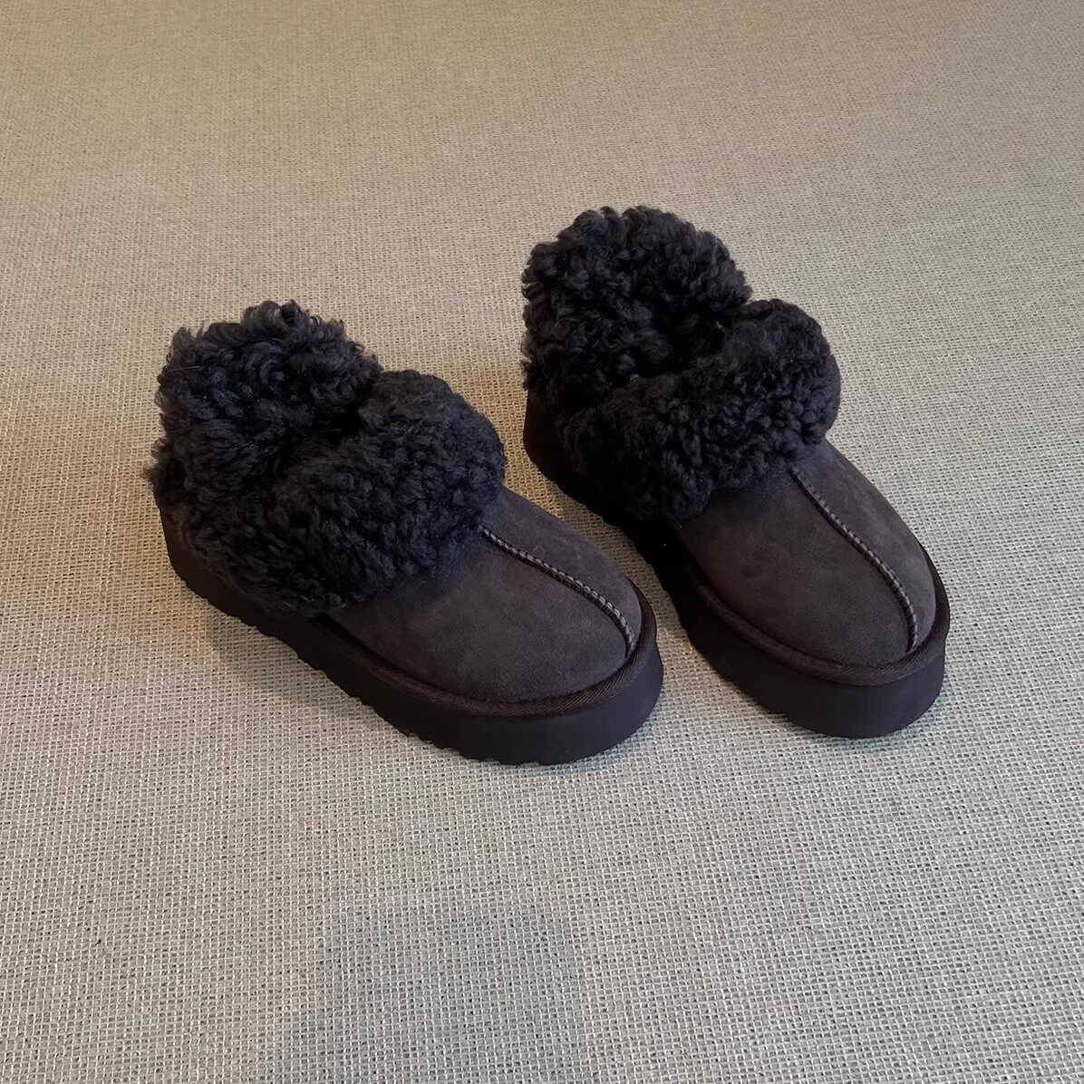 ~秋冬羊卷毛保暖雪地靴女真皮厚底小个子新款包头棉拖防水短筒
