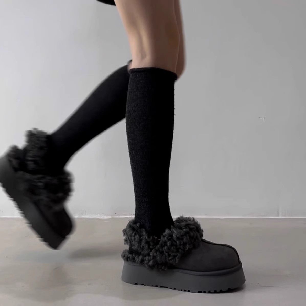 miu家厚底雪地靴女冬季真皮短靴羊毛侧拉链增高厚底加绒毛毛棉鞋