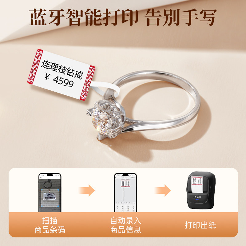 驰腾珠宝首饰标签小卷芯25mm标签纸热敏适配便携机戒指银饰手链项链价签牌手镯饰品吊牌打印纸不干胶商品空白