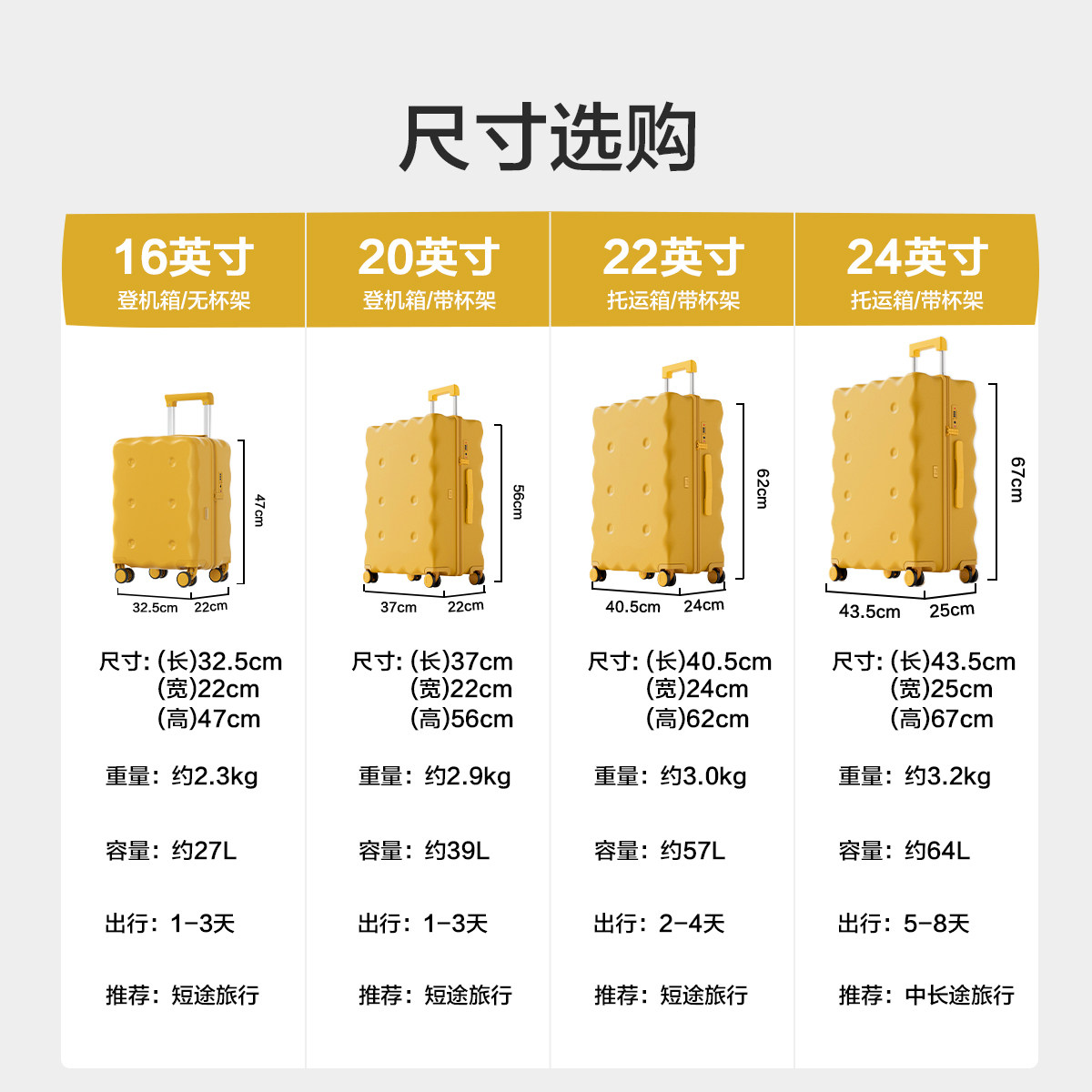 HLA/海澜之家饼干行李箱女16寸小型2026新款多功能旅行拉杆行李箱