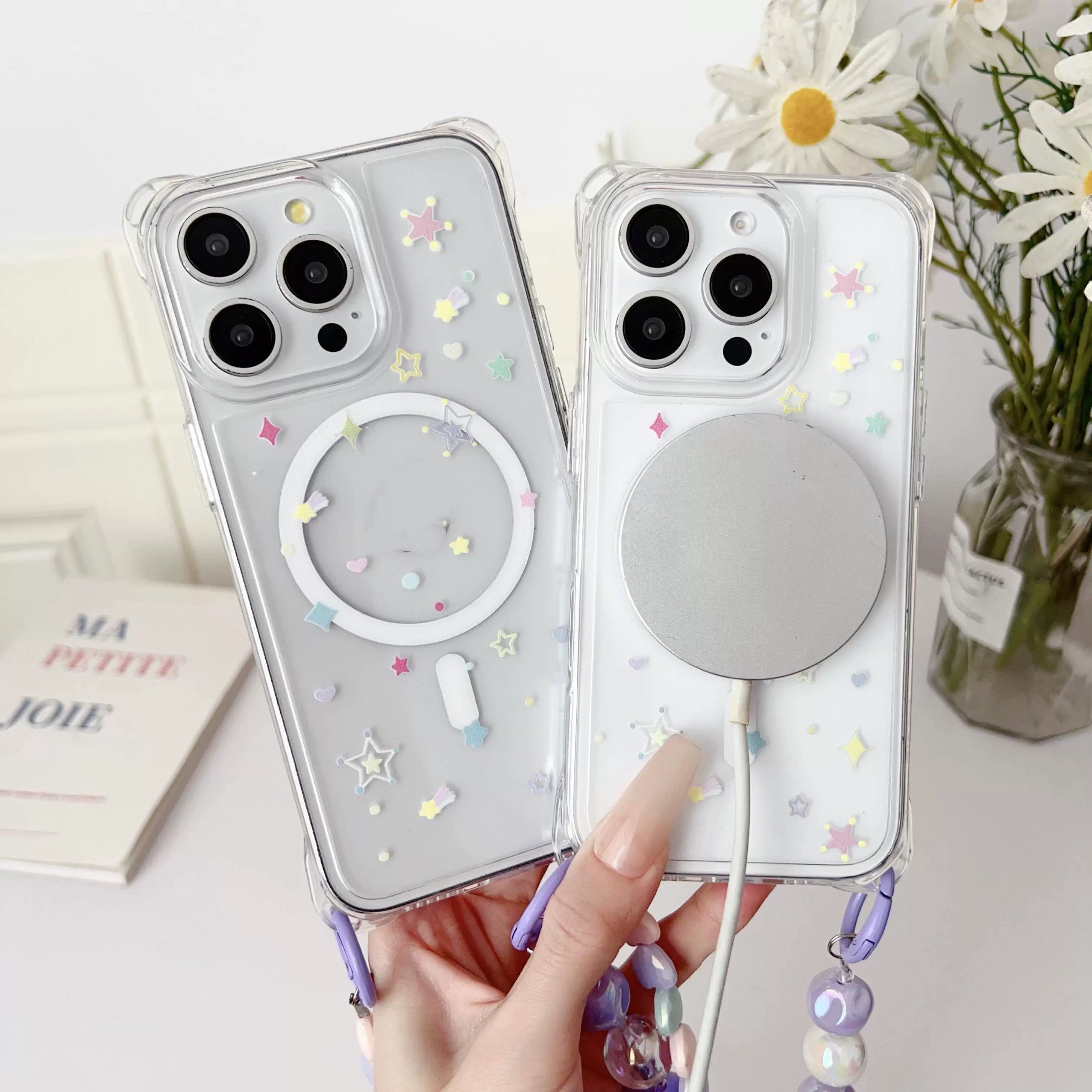 磁吸款适用iphone17promax手机壳链条苹果16斜挎15pro透明13磁吸14满屏星星12保护套多巴胺11大孔女全包防摔