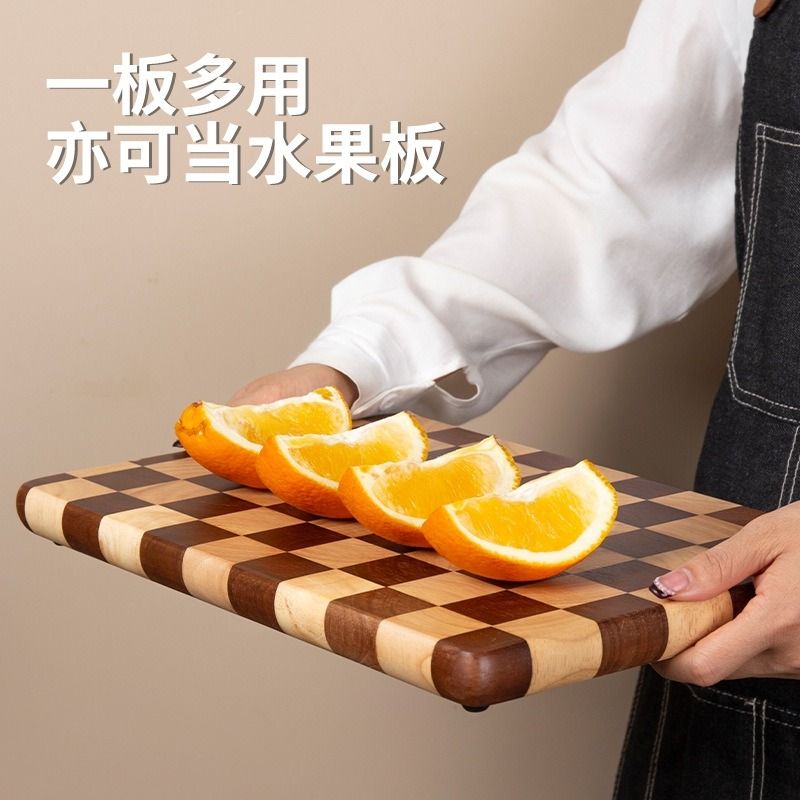 棋盘格菜板泰国相思木家用辅食切菜板实木砧板粘板案板防滑橡胶
