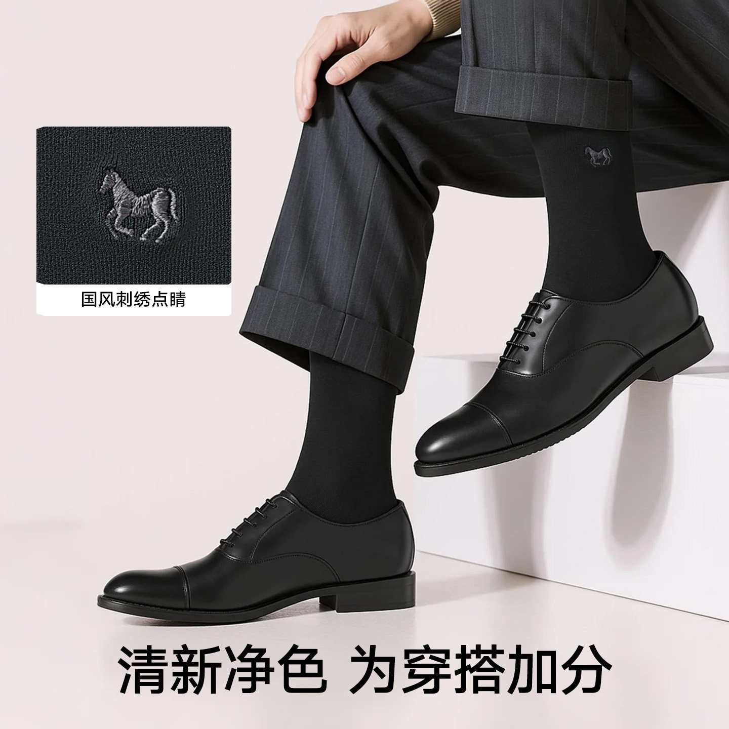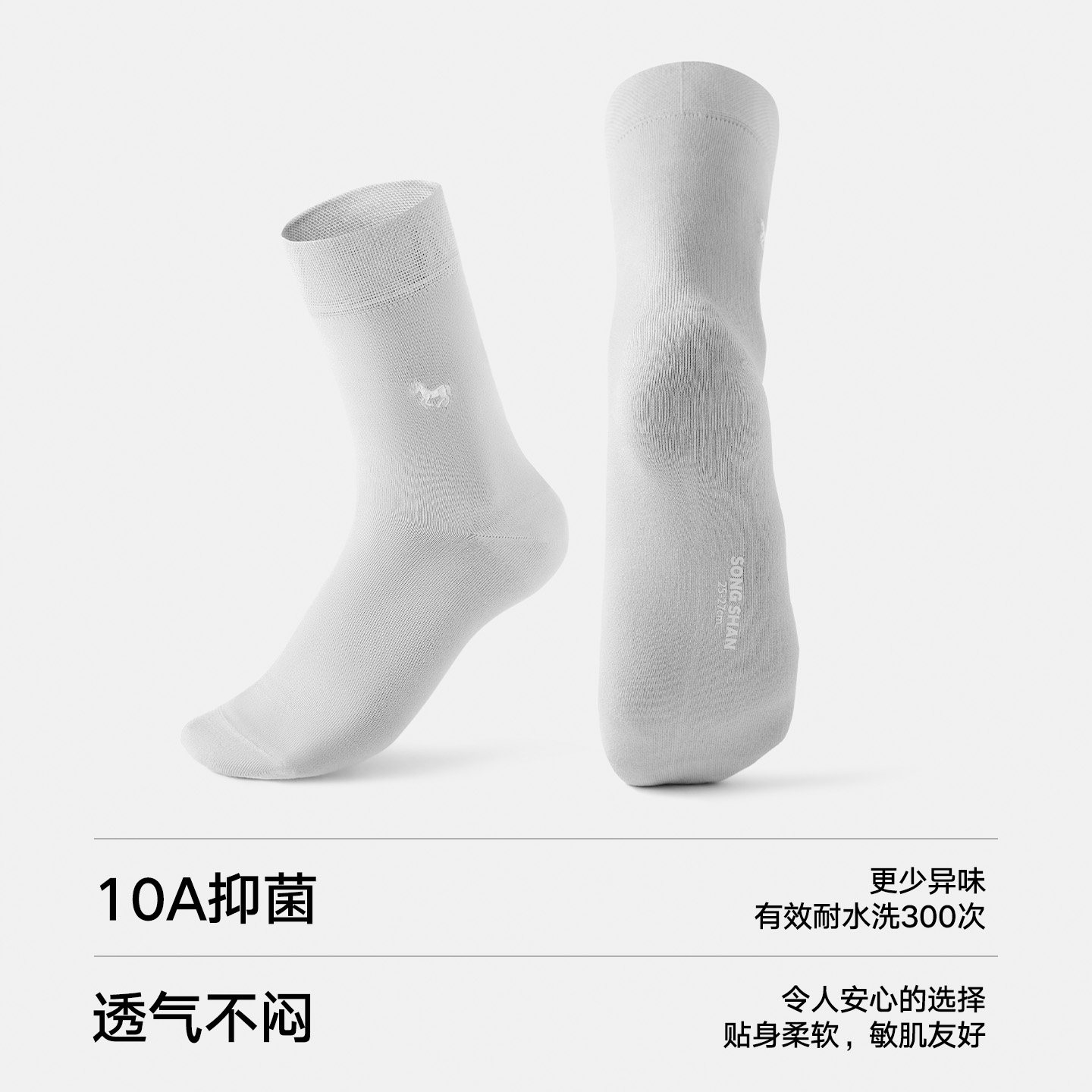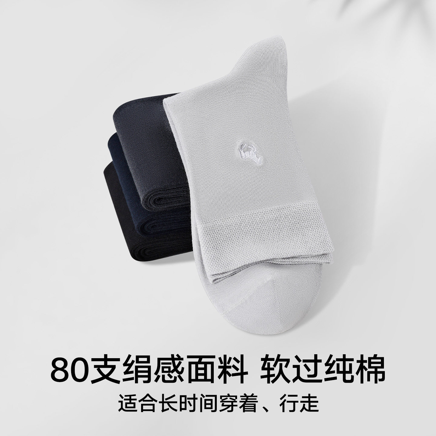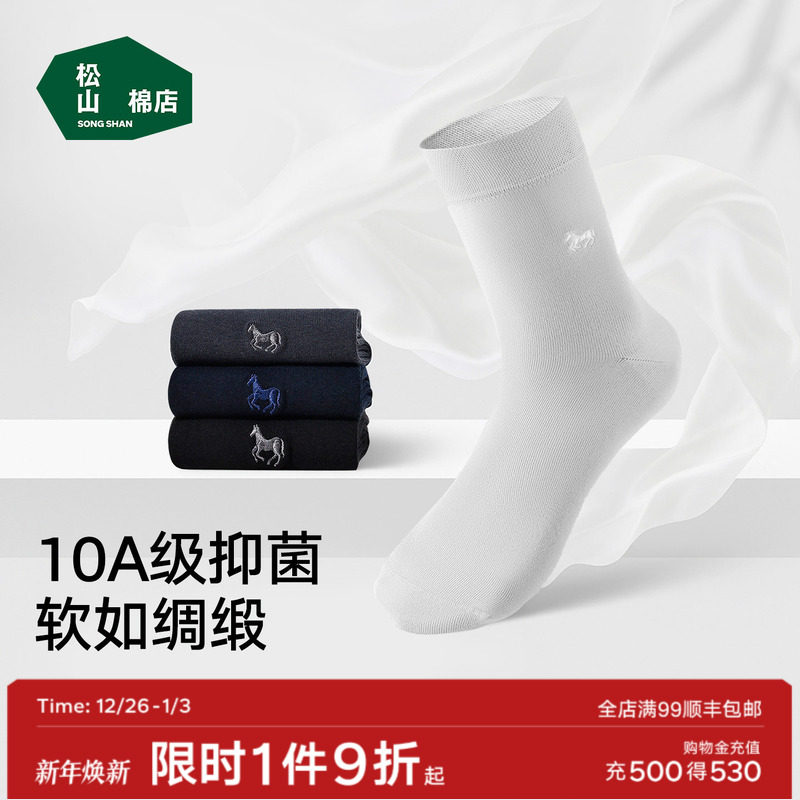 松山棉店绢感刺绣男士中筒袜10A抑菌净色通勤百搭棉袜透气柔软袜