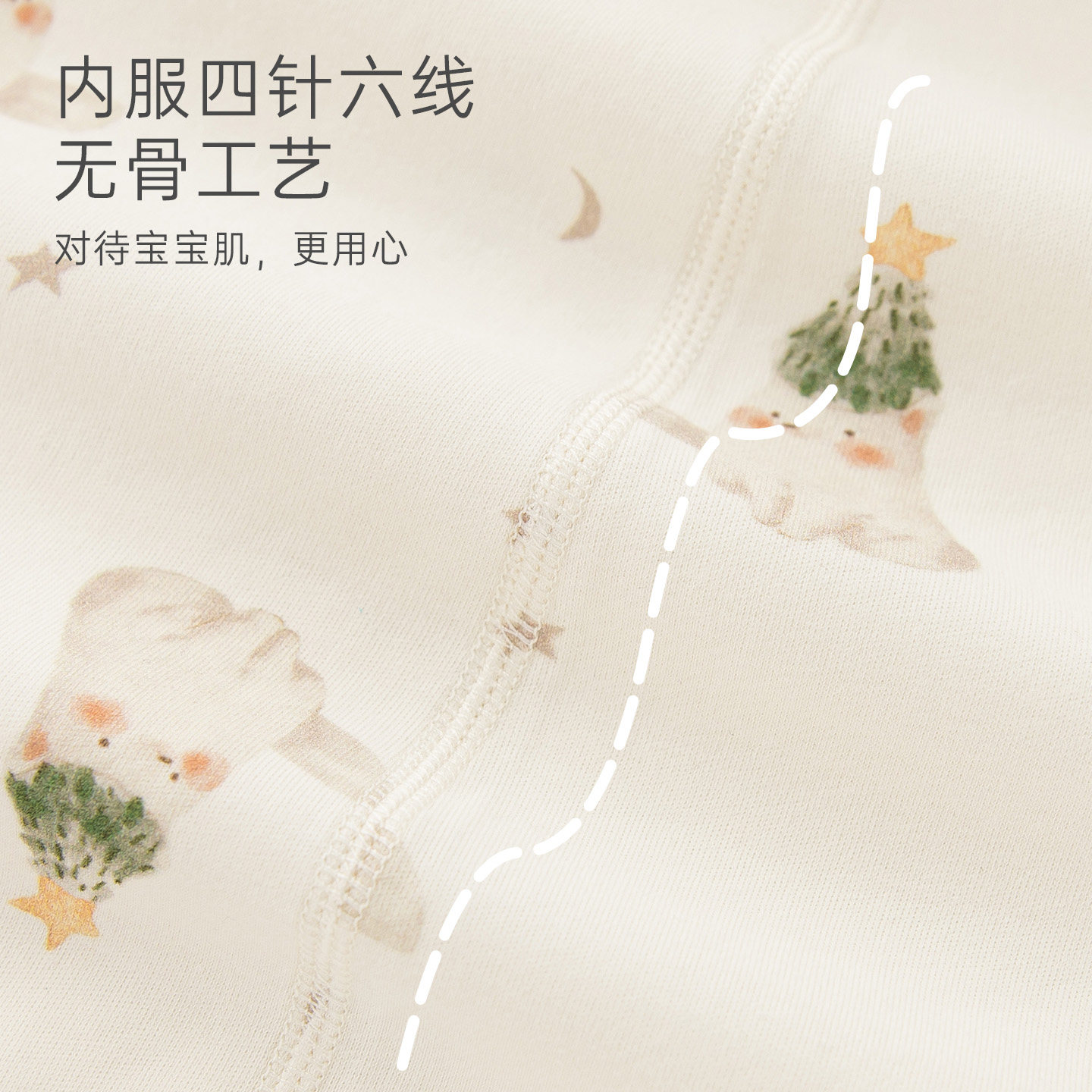 木生棉婴儿长袖连体衣秋冬季宝宝纯棉保暖肩开哈衣无骨爬爬服睡衣