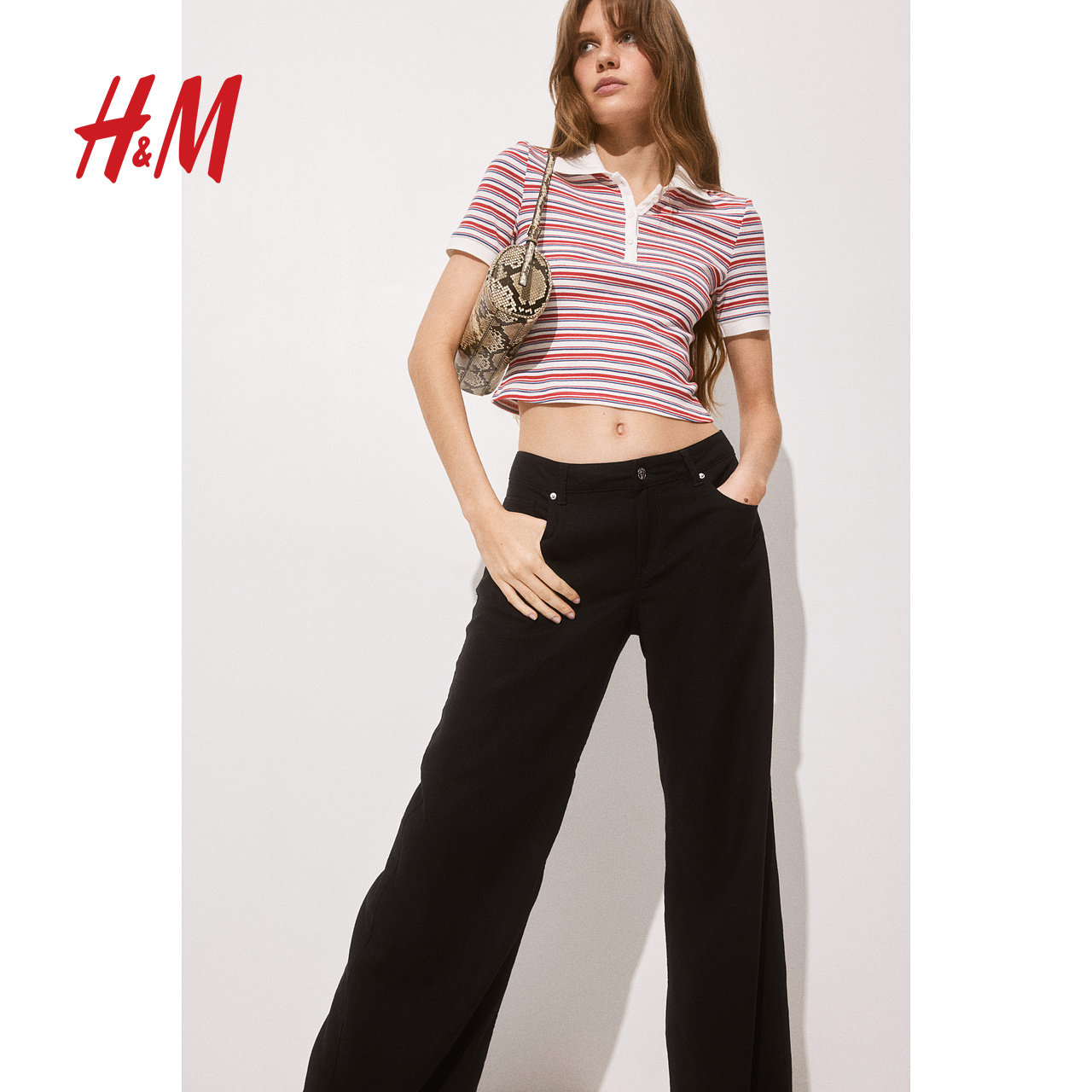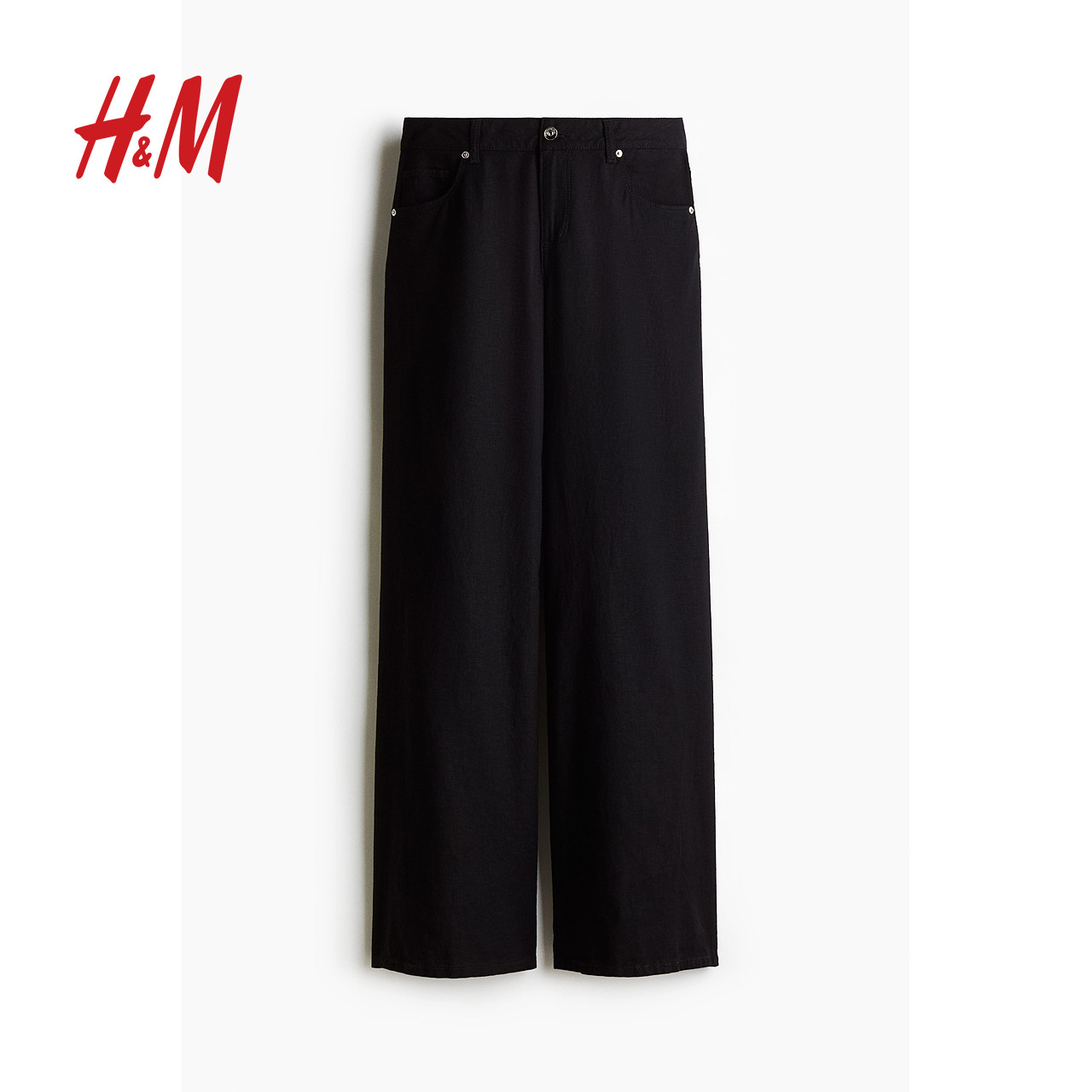 HM女装休闲裤2025年冬季新品亚麻潮流时尚柔软混纺阔腿裤1262014