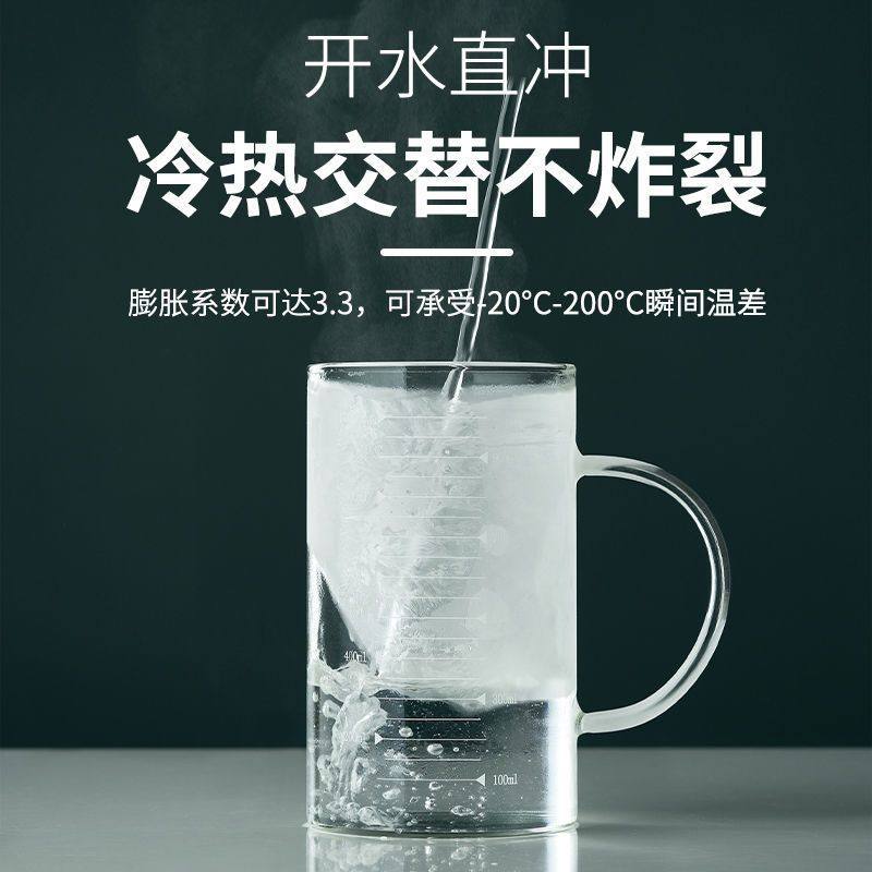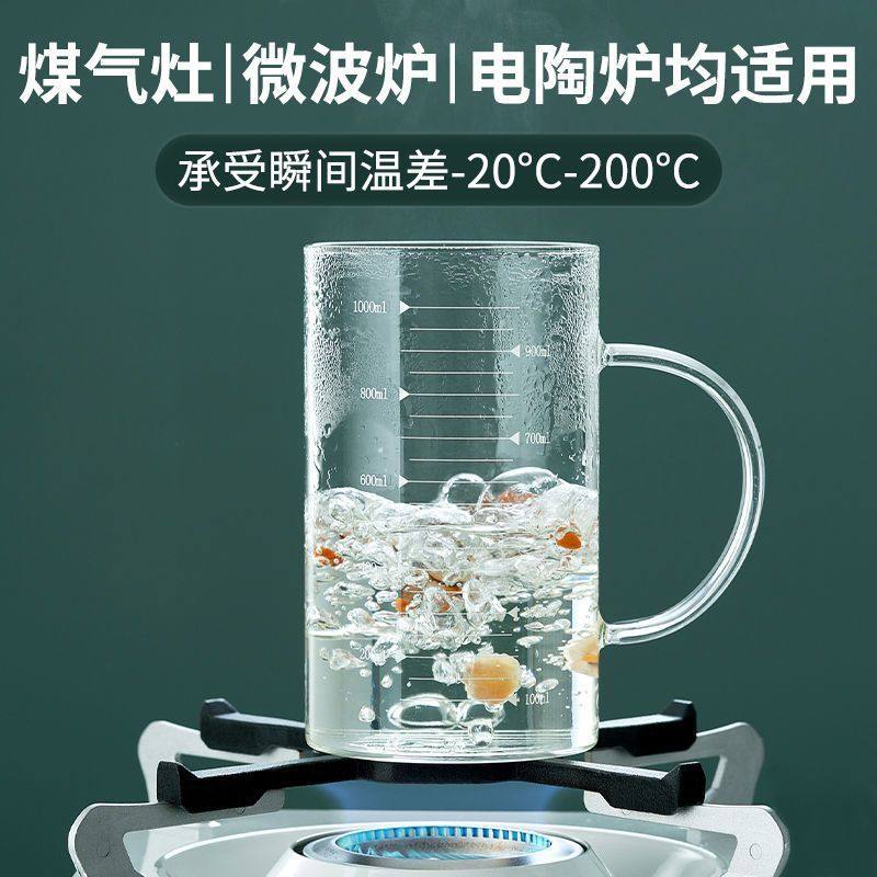 高硼硅玻璃杯带刻度水杯家用杯子1000ml大容量耐高温带盖泡茶杯
