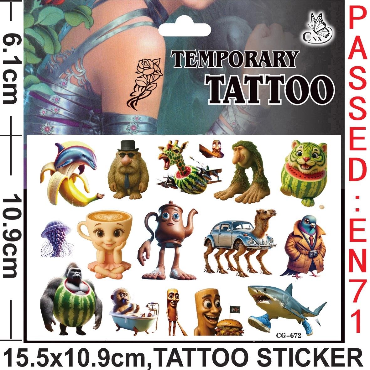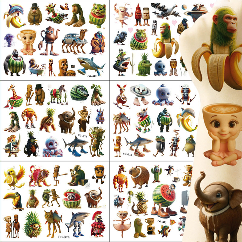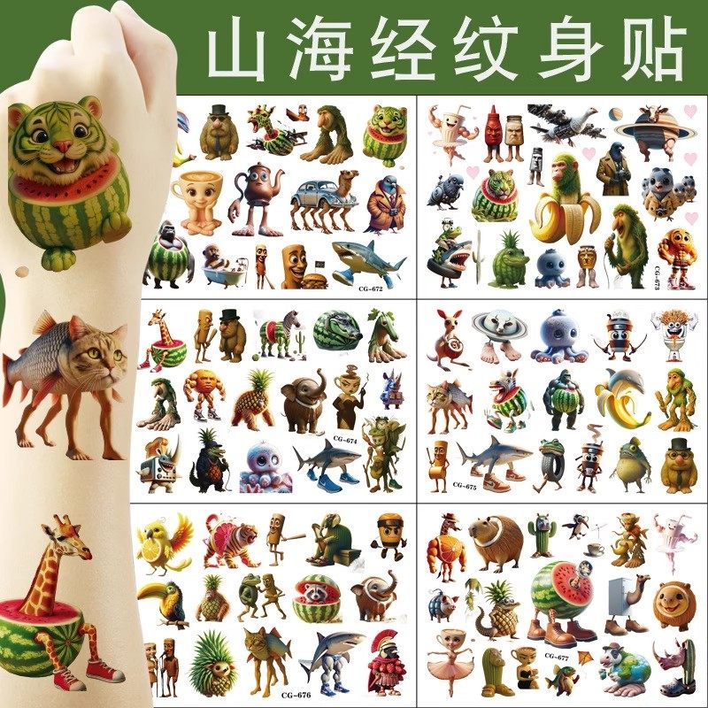 儿童外国山海经周边女童动漫AI木棍人自粘贴纸cos防水闪粉纹身贴贴纸防水纹身贴纸新款奖励手账卡通图案可洗6