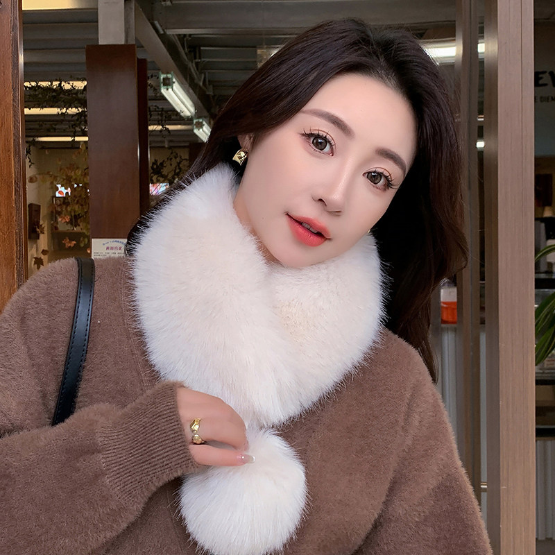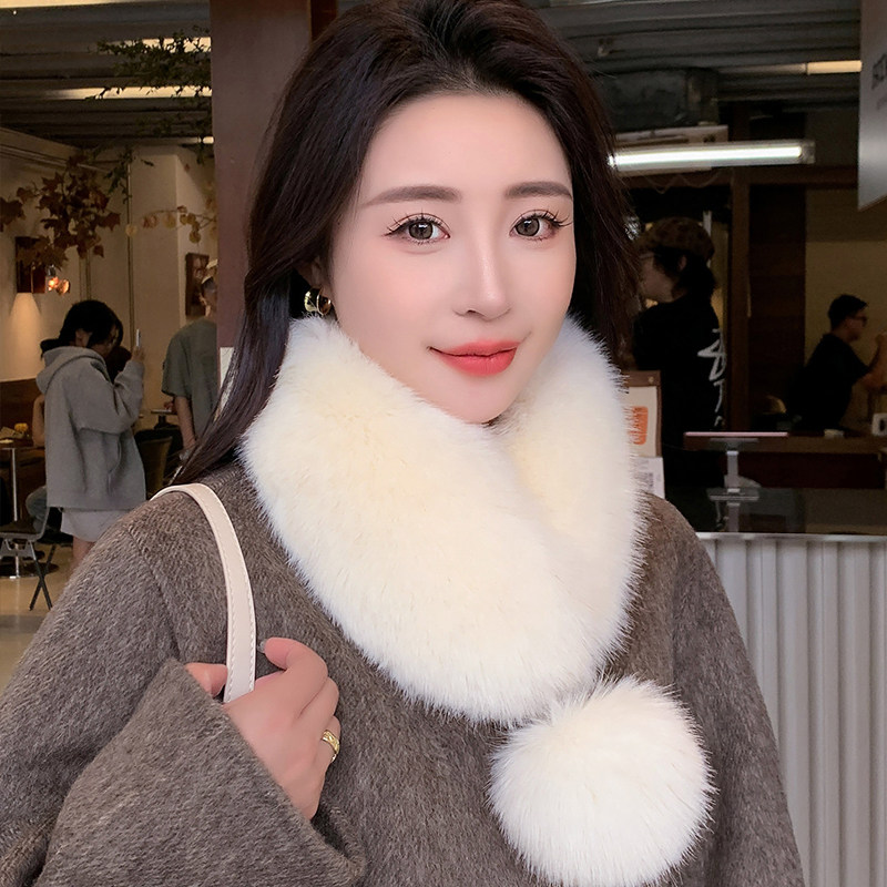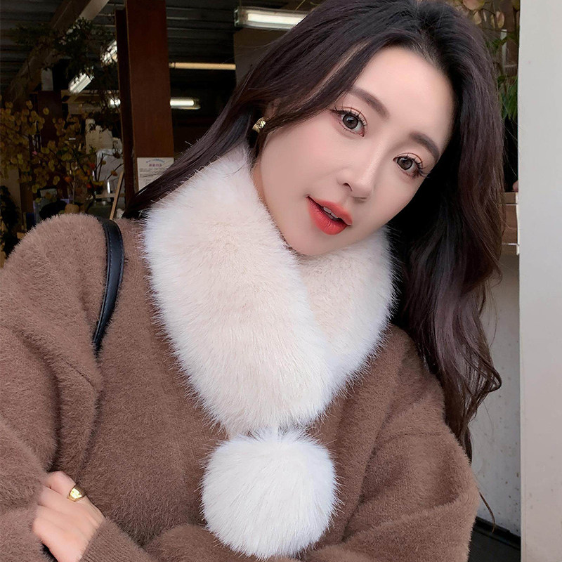 法式毛绒毛球围巾女高级感冬季配大衣皮草仿狐狸毛领保暖护颈围脖
