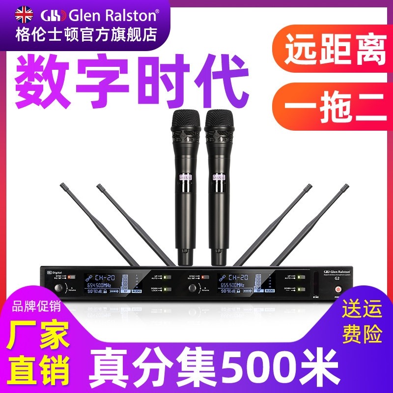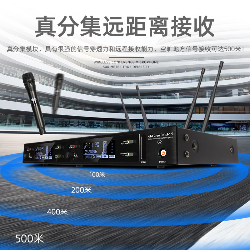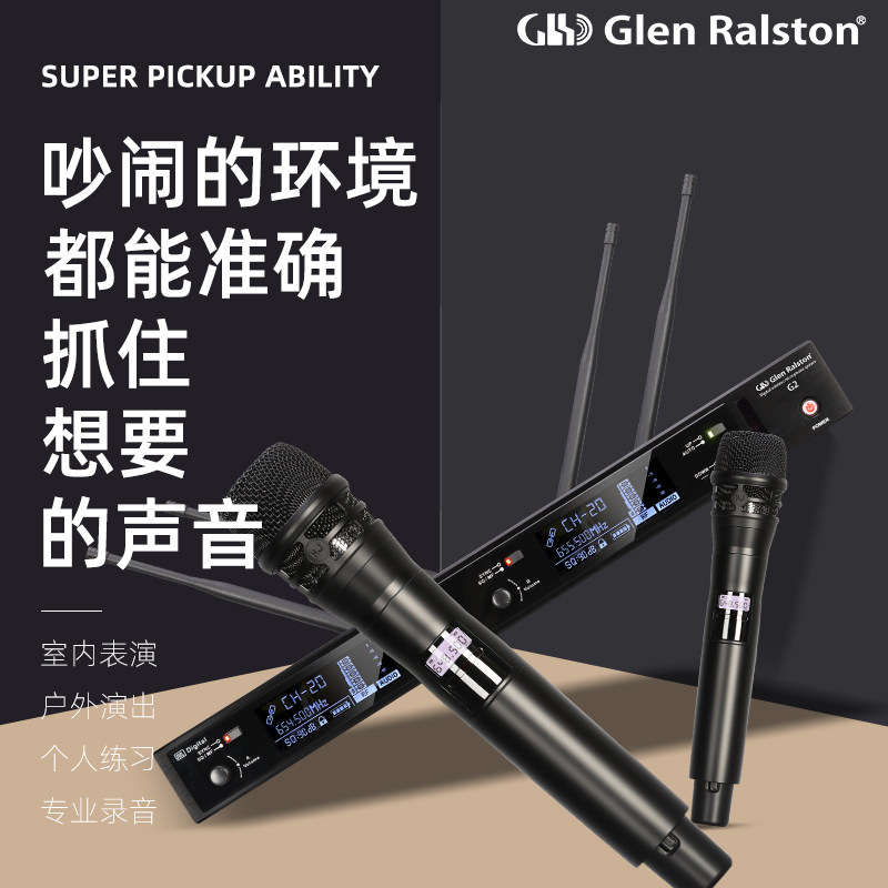 Glen ralston/格伦士顿一拖二真分集无线话筒户外舞台头戴领夹麦