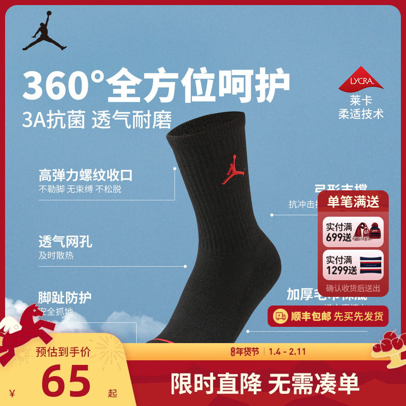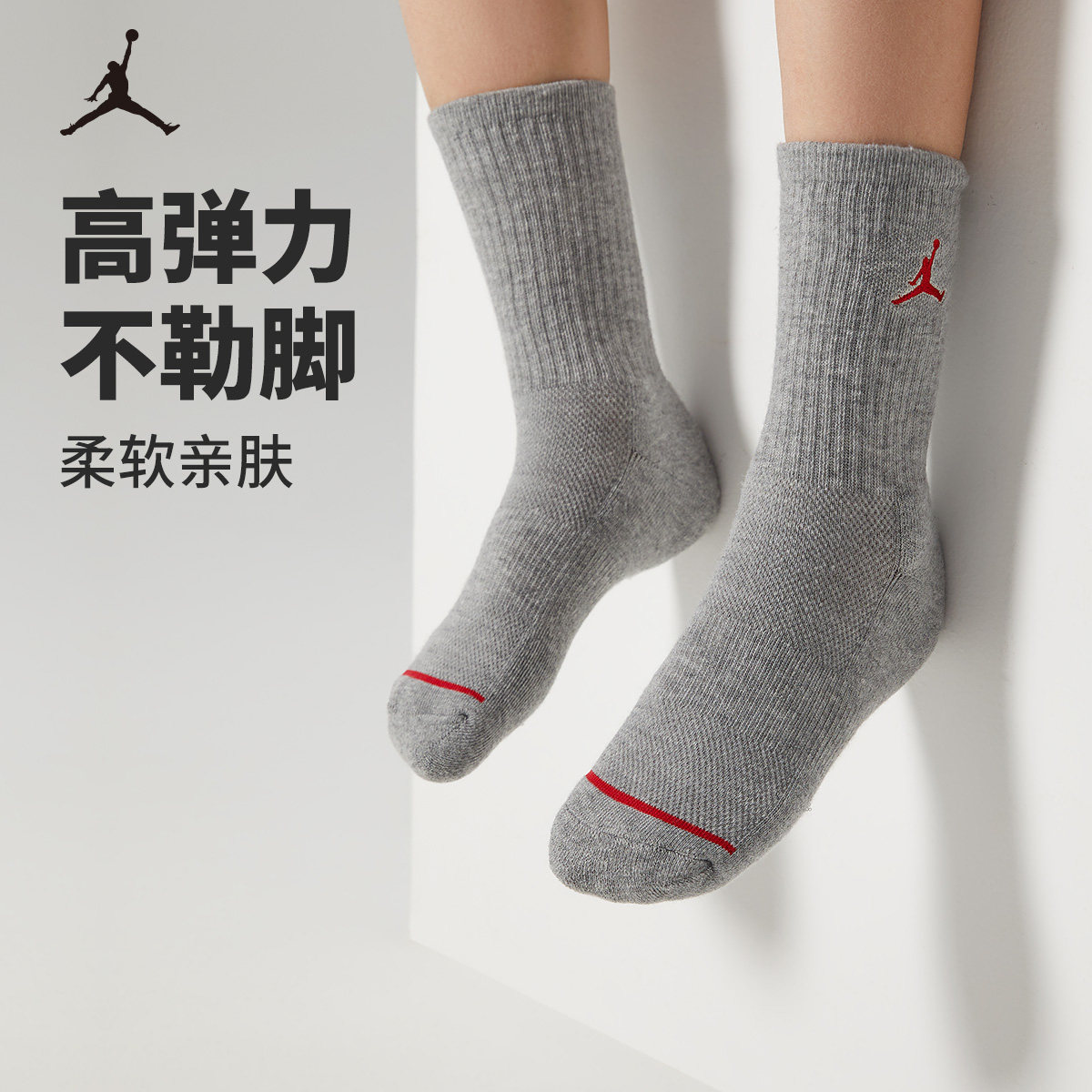 Jordan儿童运动袜男童袜子秋冬季篮球长袜女童棉袜3双装JD2433091