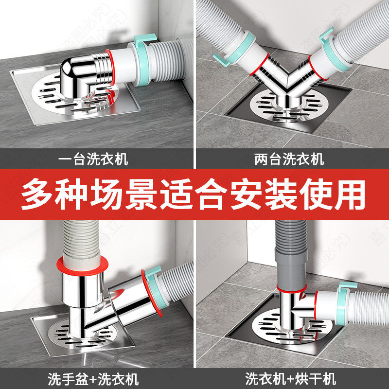 洗衣机地漏专用接头下水排水管道防反溢水二合一三通方形地漏盖子