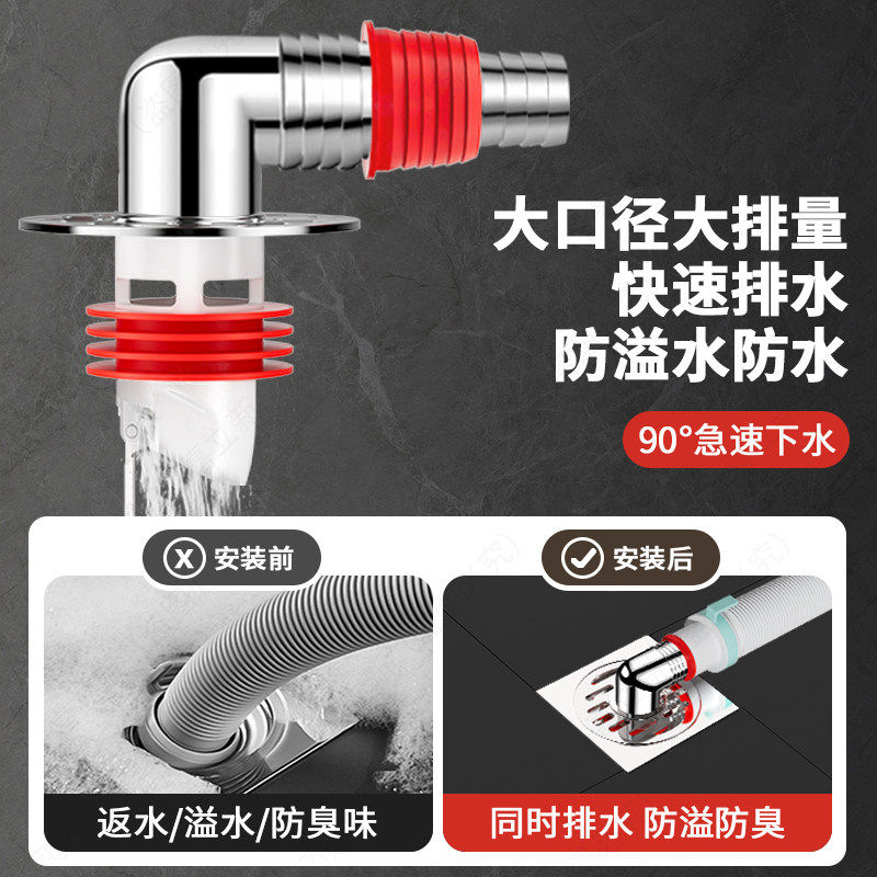 90度墙排下水管三通洗手盆弯头直角下水器洗衣机地漏接头防臭神器