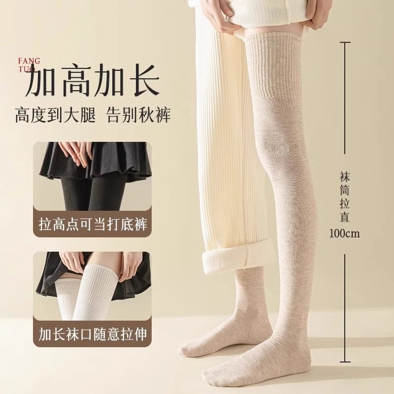 过膝袜子女秋冬款压力显瘦高筒长袜纯棉加厚保暖护膝大腿袜配长靴