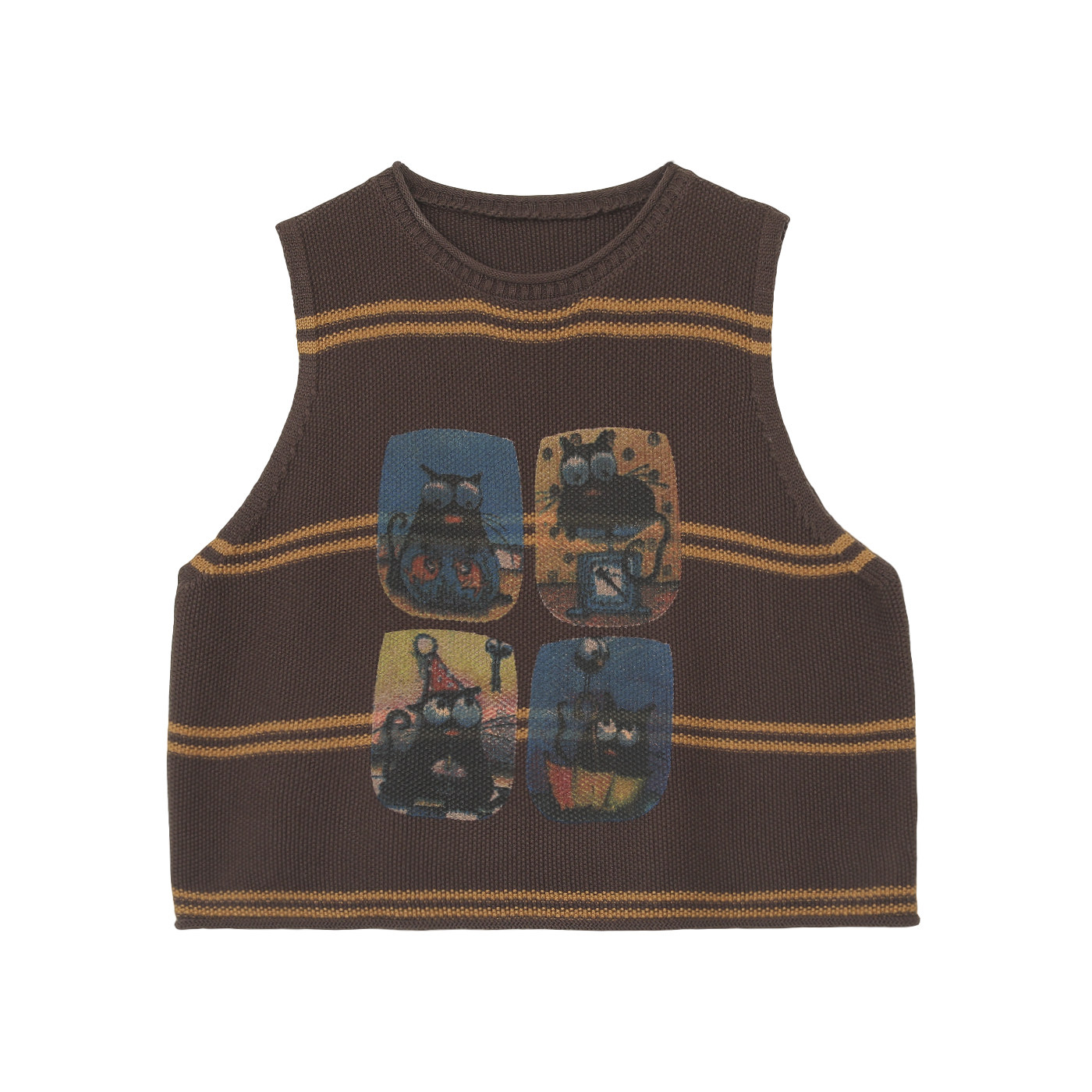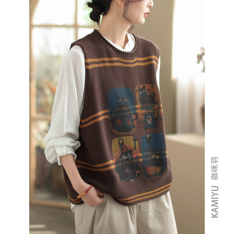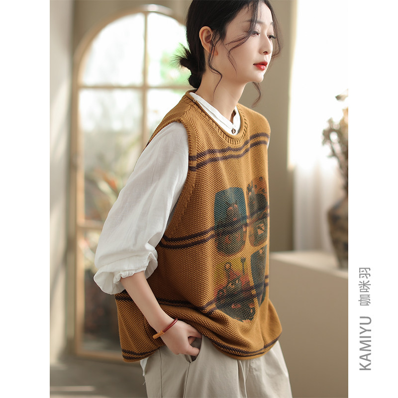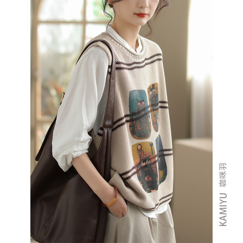 咖咪羽针织马甲女春秋新款圆领无袖棉线坎肩休闲背心显瘦女装马夹